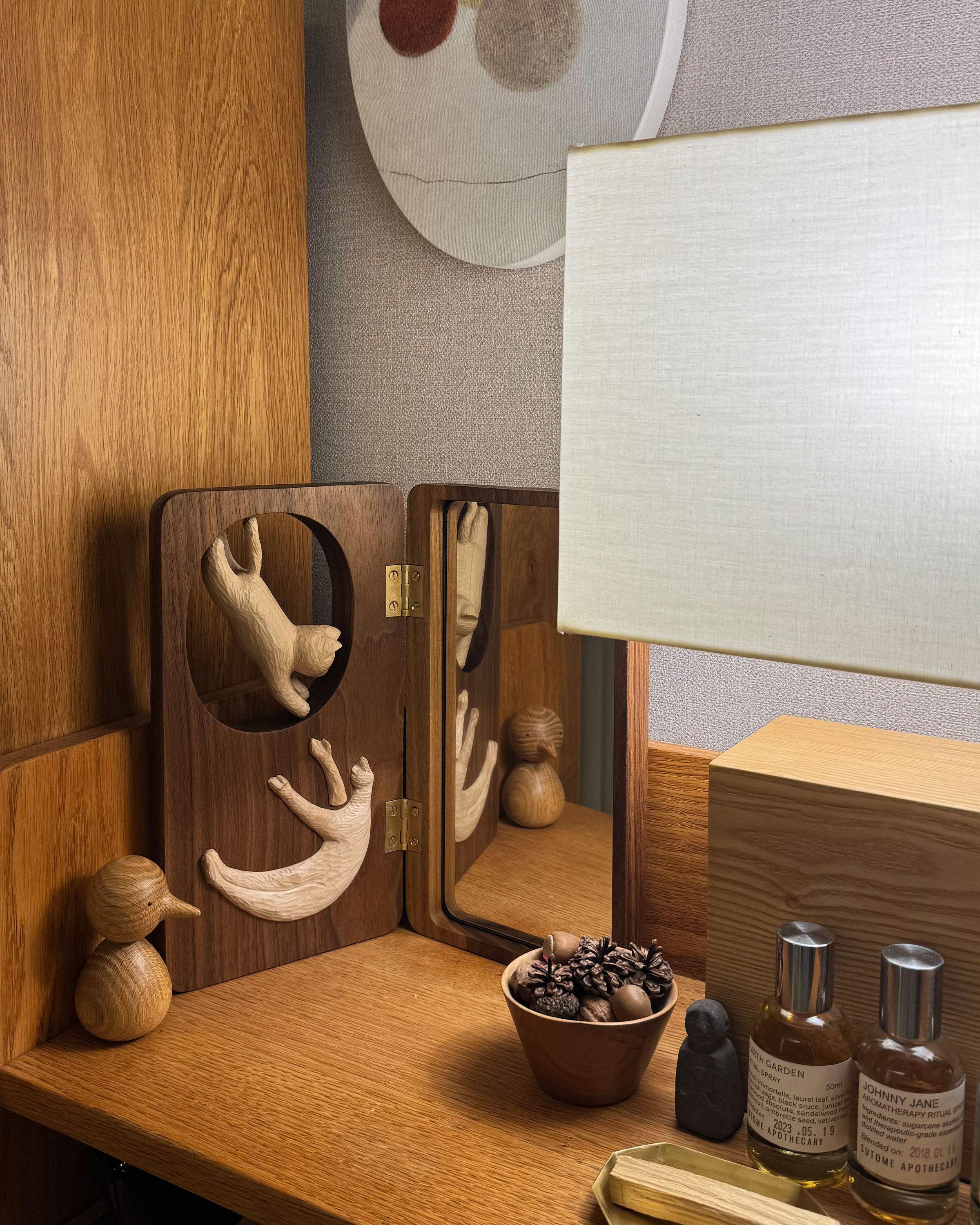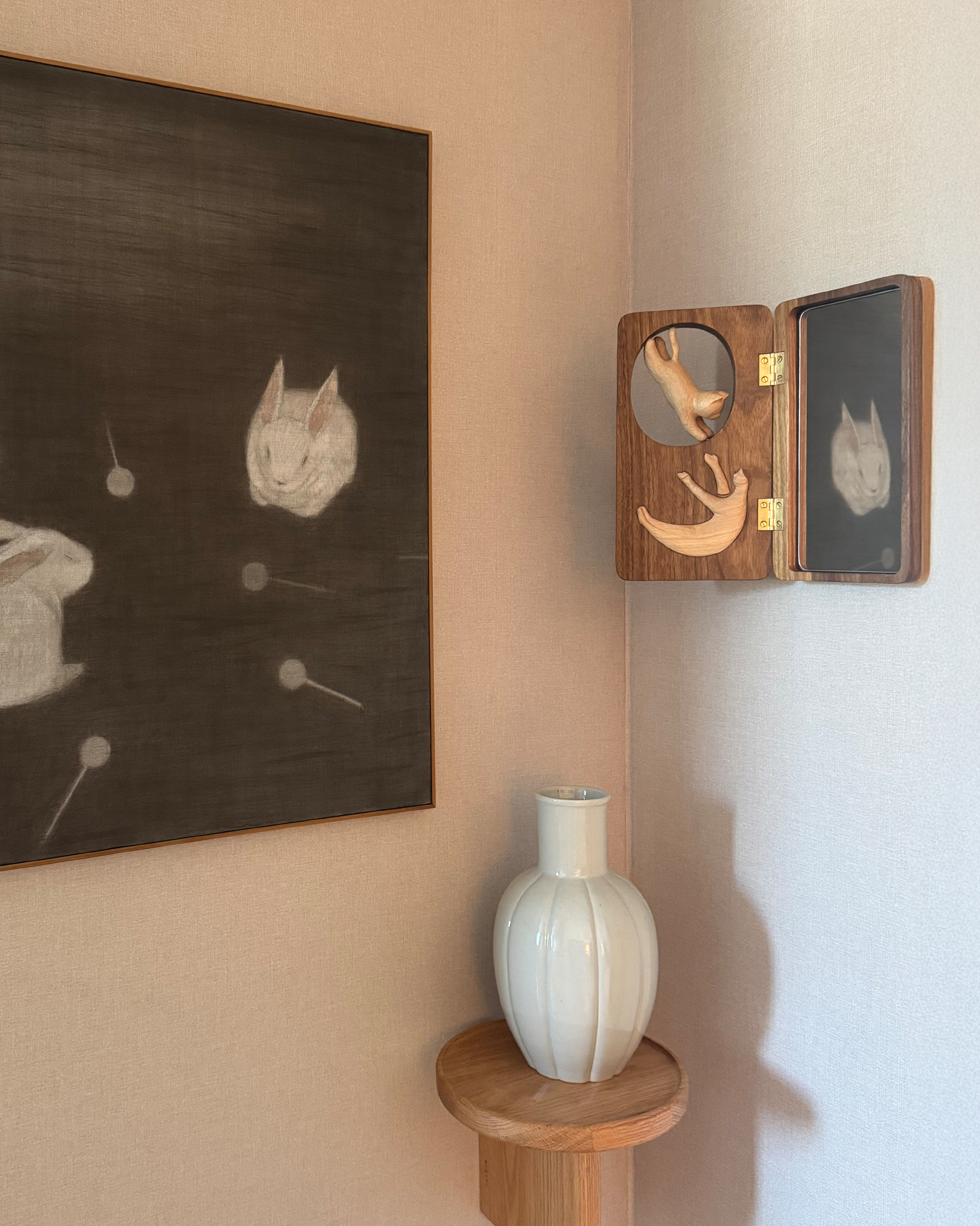 한동안 벽에 걸지 않고 집안 이곳 저곳에 두었는데, 벽에 설치하고 문을 여는 순간 작가님의 의도대로 "간택의 순간"을 온전히 느낄 수 있겠더라구요.