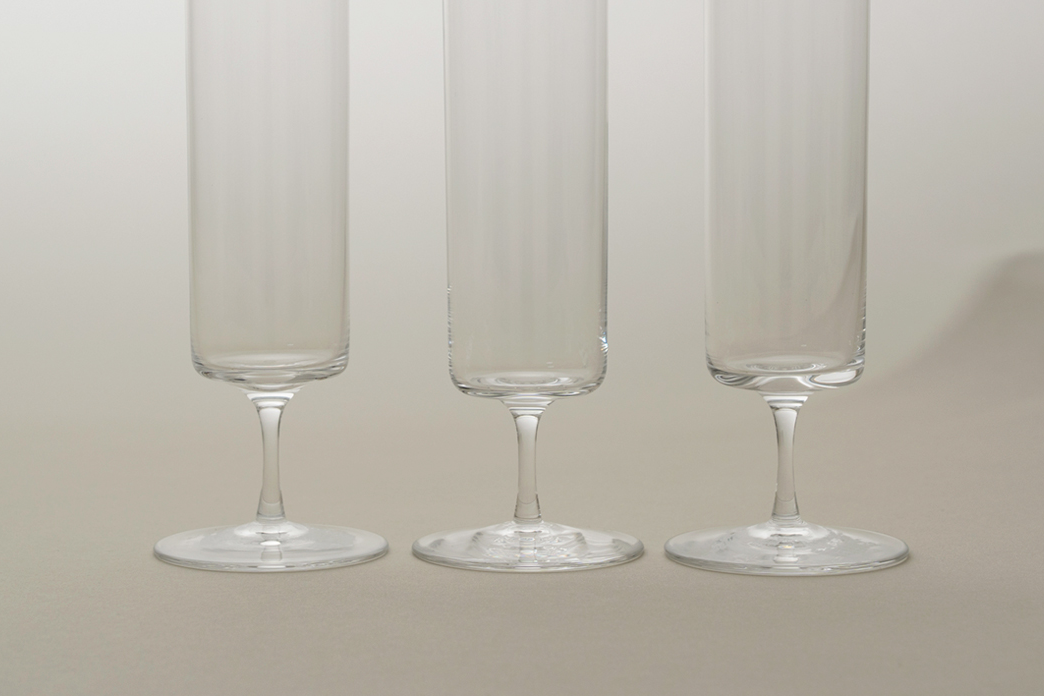 청량한 순간을 위한 직선 직선의 절제미와 유려한 실루엣이 돋보이는 〈Time&Style〉의 〈RAISIN Sparkling Straight〉입니다. 마우스 블로잉 기법으로 섬세하게 제작된 유리잔으로 발포성 와인과 가장 좋은 호흡을 이룹니다.