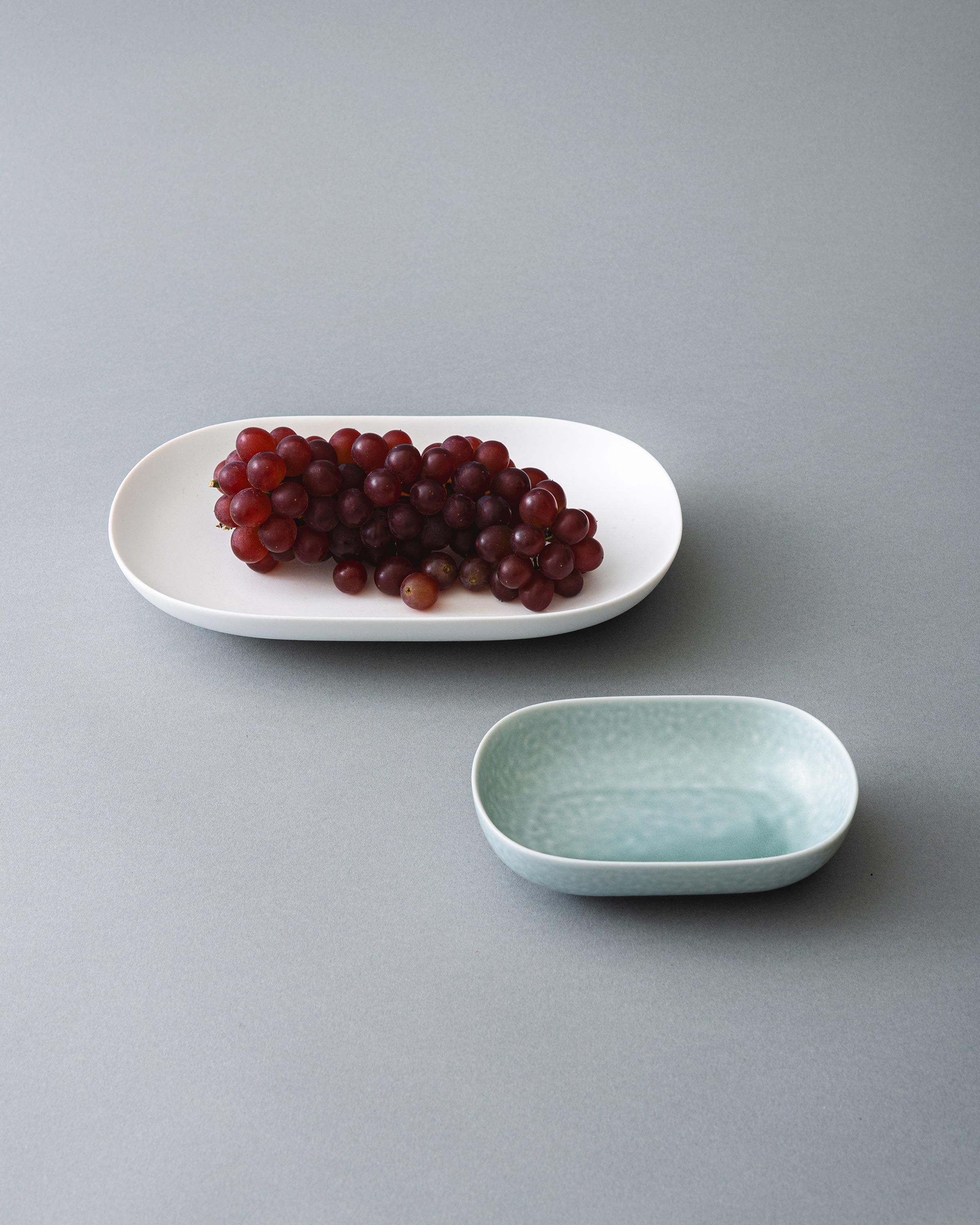 매일 쓰는 데일리 오벌 플레이트 〈yumiko iihoshi porcelain〉의 〈ReIRABO Oval Plate M〉을 소개합니다. 원과 사각형의 경계에 있는 중간 사이즈의 오벌 플레이트입니다. 완만하게 감아올린 곡선, 흔치 않은 오발 형태의 아름다움, 고요한 색감과 온기가 느껴지는 유약의 감촉까지. 리이라보 시리즈의 매력을 느끼기에 충분한 편안한 인상의 그릇이에요. 어떤 음식을 담아도 조화로운 상차림을 완성해 줄 만큼, 단정한 형태와 유약의 색감이 매력적입니다.