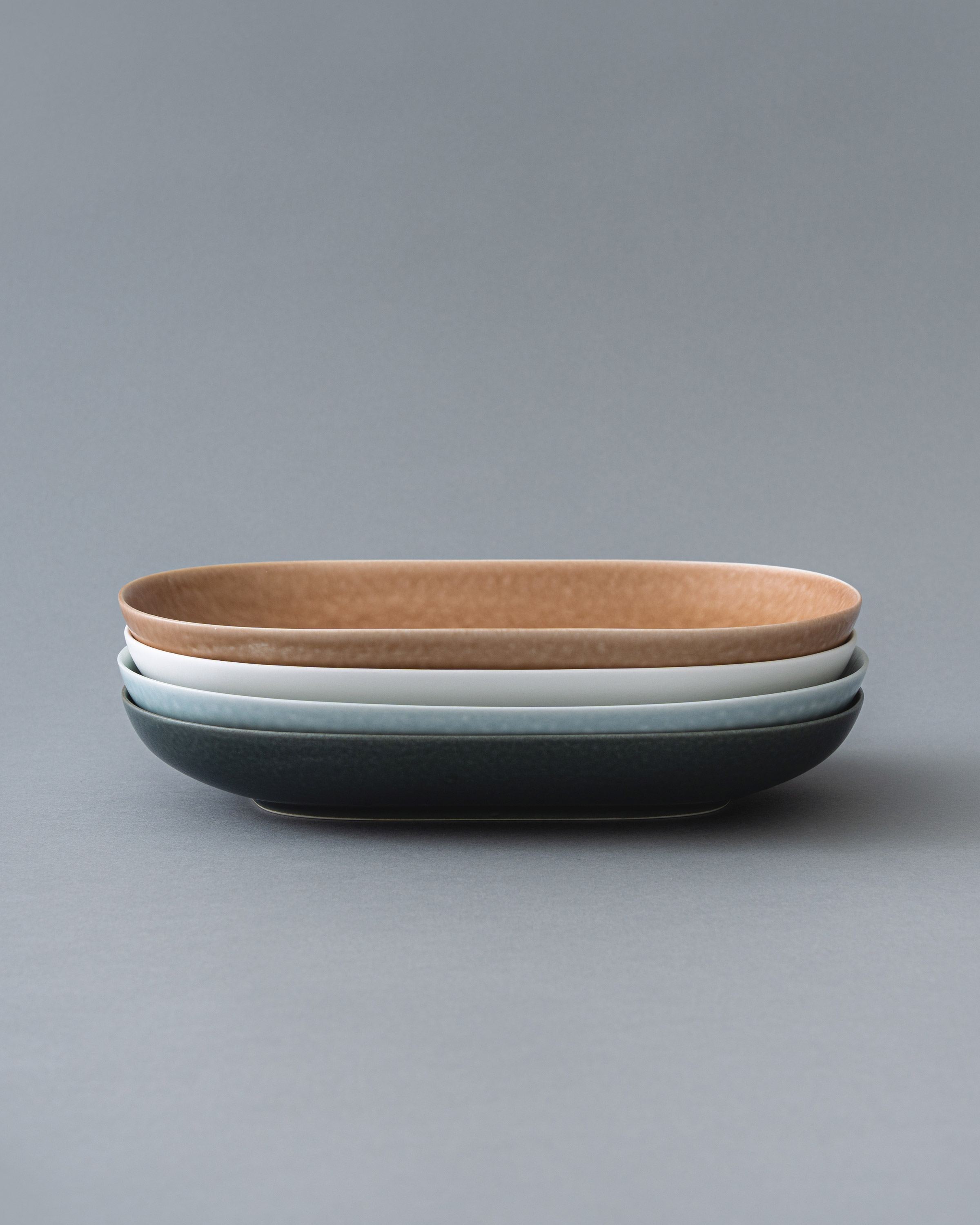 유광과 무광의 중간에 있는 그윽한 색감과 모난 데 없이 단정한 형태. 〈ReIRABO Oval Plate M〉는 '매일 사용하는 동시에 평생 간직하고 싶은 소중한 그릇'으로서 아끼게 되는 식기입니다. 브랜드의 패브릭 태그가 달린 전용 박스에 포장되어, 마음을 담은 선물로도 권해드려요.