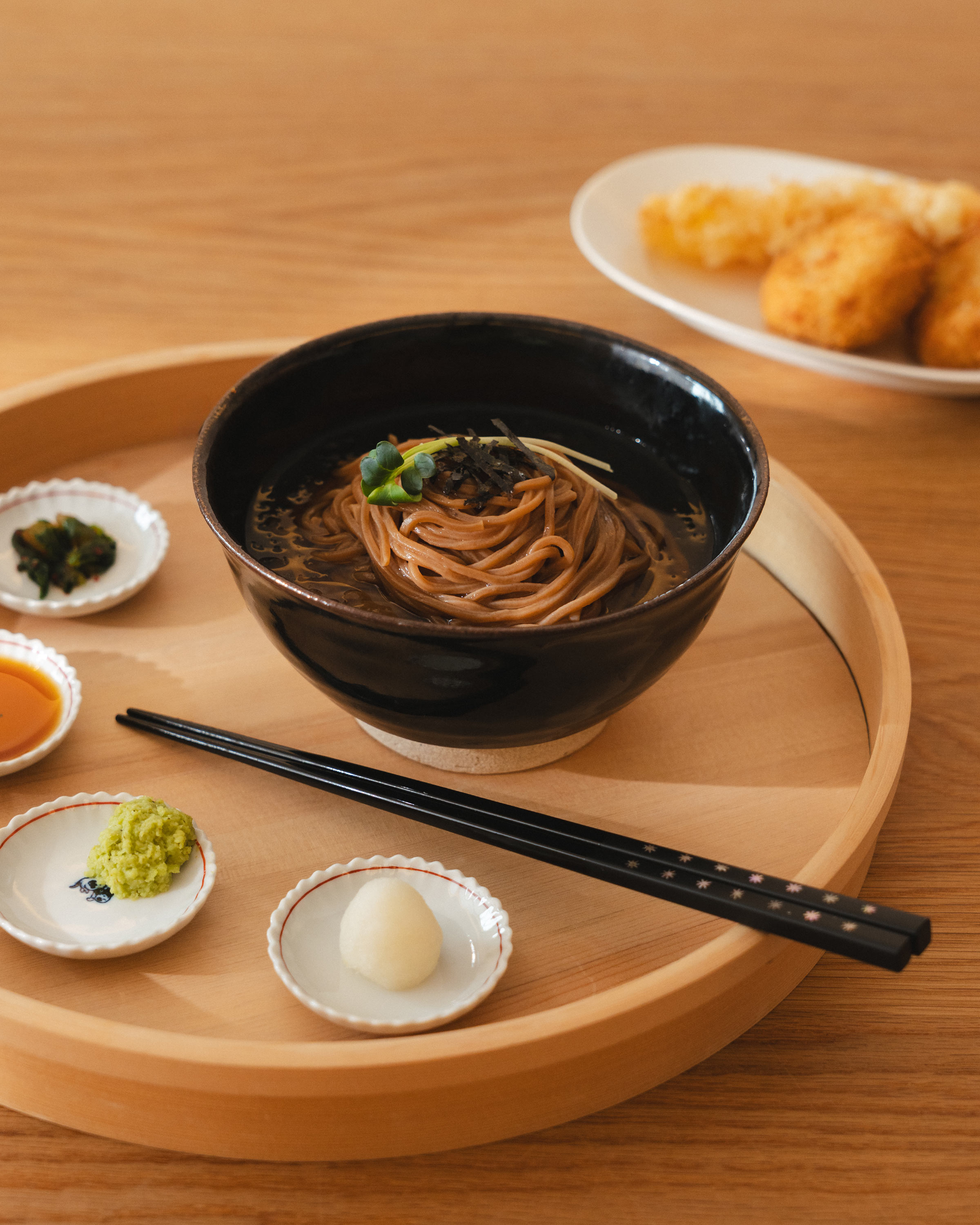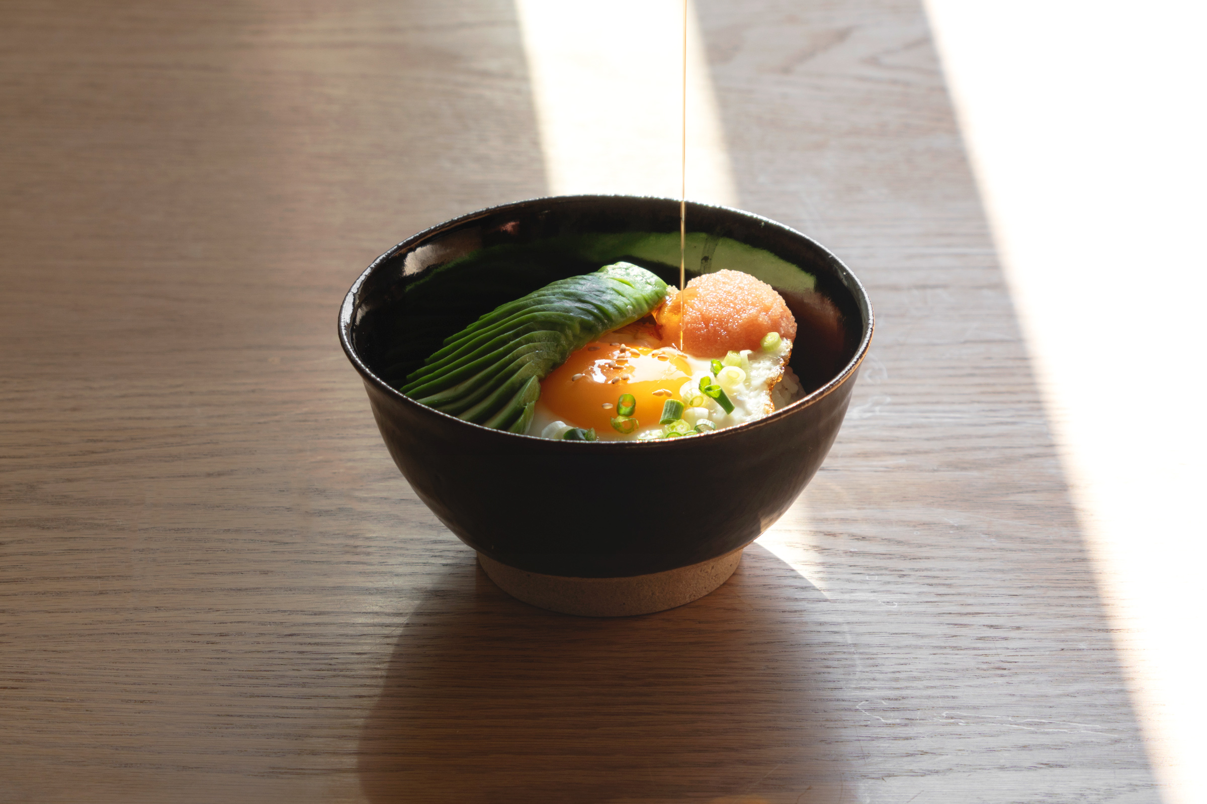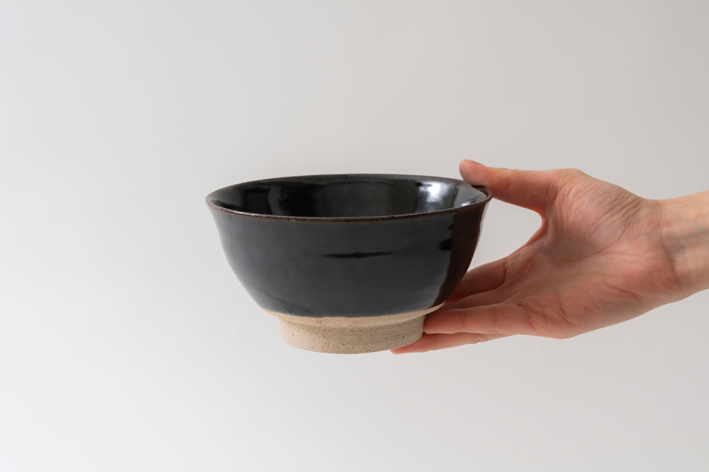 바닥에는 도기의 자연스러운 질감을 살린 약간의 굽이 있는 형태예요. 짙고 깊은 광택이 감도는 색감은 담긴 음식의 색과 질감을 더욱 또렷하게 살려줍니다. |