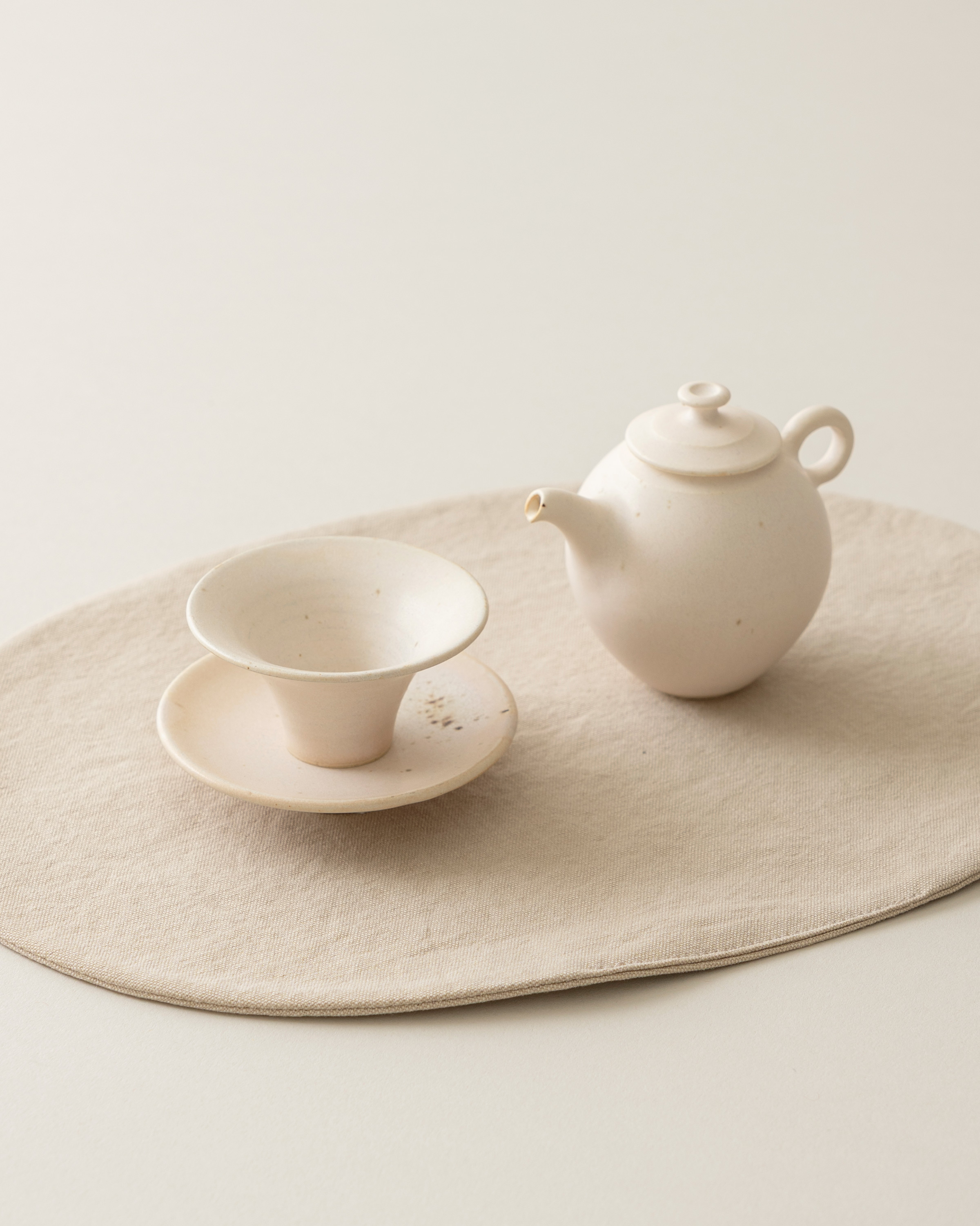 다양한 직업인의 손을 관찰하며, 기능성과 품위를 갖춘 살림살이를 제안하는 〈지향사〉의 〈타원 티매트〉를 소개합니다. 오직 TWL에서만 만날 수 있는 올리브 그린과 아이보리 색상으로, 마음에 안정감을 주는 편안한 색감이 찻자리에서 다기의 아름다움을 한층 돋보이게 하는 티매트입니다.