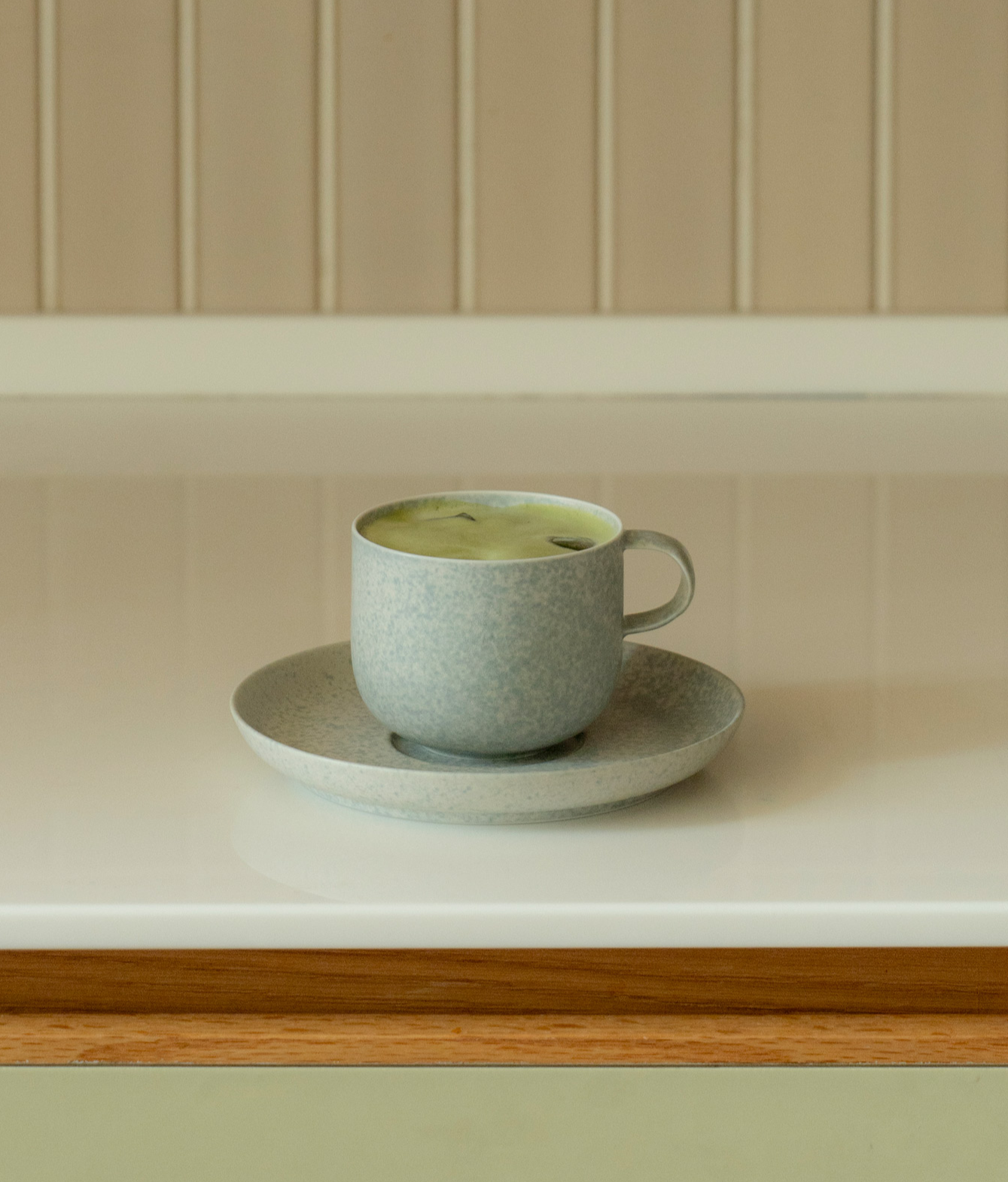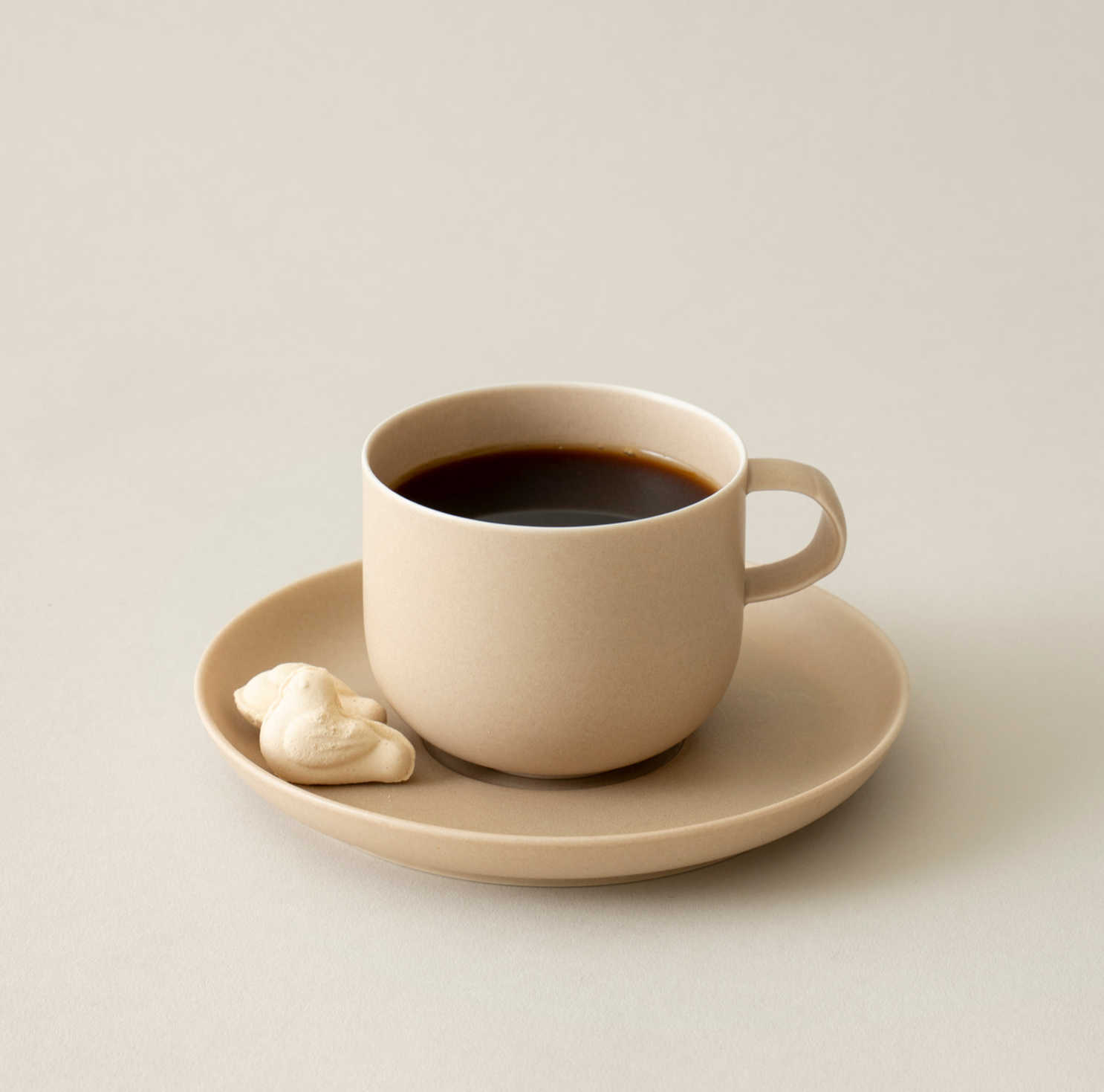 M사이즈는 높이가 S와 동일하지만, 지름이 조금 더 넓은 형태라 한층 둥글둥글하고 안정적인 인상을 줍니다. S가 조금 더 단정한 찻잔과 커피잔에 가깝다면, 80은 가로로 더 넓은 비율이라 더 포근한 분위기의 머그 잔 느낌이에요. 소서와 함께 매치하면 더 클래식하고 차분한 매력을 즐길 수 있어요.