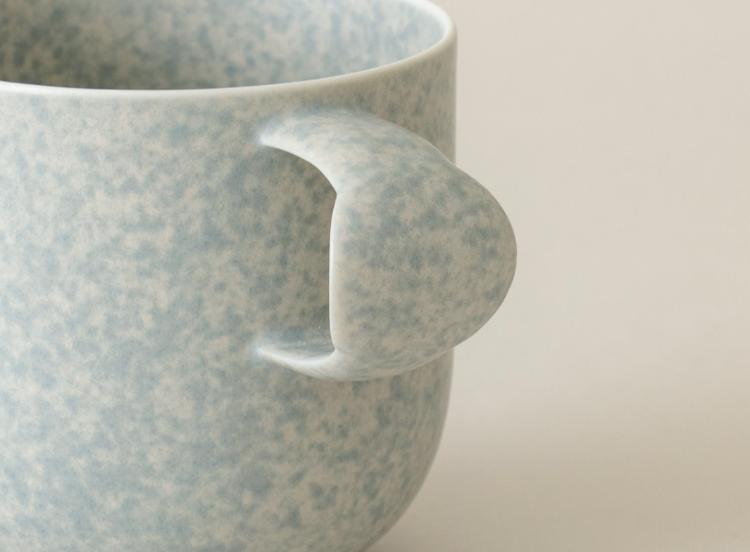 가장 먼저 들어오는 건 특유의 둥글둥글한 분위기와 독특한 핸들 라인입니다. 크기가 크지 않아도 컵 자체가 가벼워 부담 없이 들 수 있어요. 직접 써보면 작은 디테일이 더 와닿는데요, 바닥이 평평하게 마감되어 세척 후 건조할 때 물이 고이지 않아 식기세척기에 돌리기에도 좋습니다.