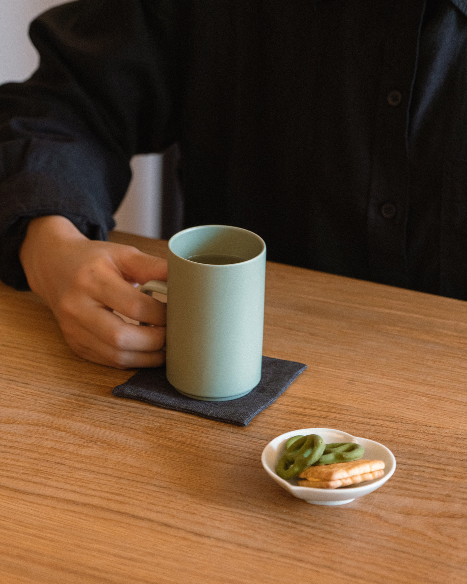 토림도예의 캐주얼 라인인 〈스튜디오 토림〉과 TWL이 함께 제작한 단독 에디션, 〈티 머그 - 세이지 그린〉을 소개합니다. 여러 가지 유약 테스트 끝에 완성한 세이지 그린 컬러는 은은한 회백색이 감도는 그린 색상이에요. 빛의 각도에 따라 조금씩 달라지는 오묘한 색감이 매력적입니다.