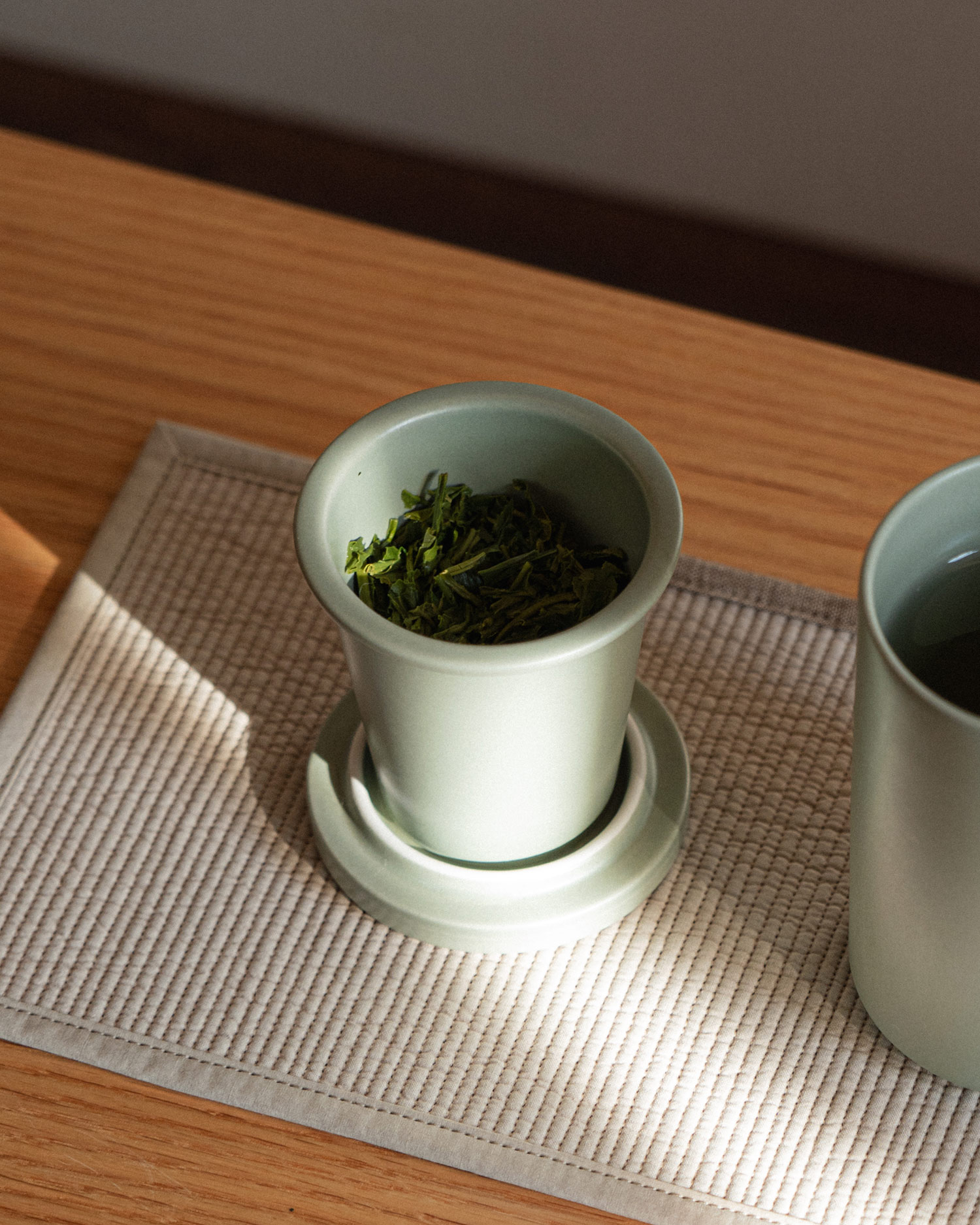 쭉 뻗은 직선 실루엣의 머그 잔, 거름망, 뚜껑으로 구성되어 있습니다. 차가 궁금하지만 어떤 도구부터 시작해야 할지 고민된다면, 또는 잎 차를 일상에서 좀 더 가볍고 간편하게 즐기고 싶다면 이 티 머그로 시작해 보세요. 차를 즐기는 데에 필요한 모든 요소가 하나로 담겨 있어 매일의 찻자리에 부담 없이 함께 하기 좋습니다. |