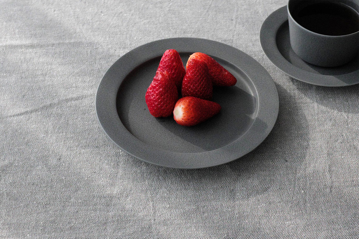 하루의 일과를 담은 다섯 가지 사이즈 〈Unjour〉 시리즈는 아침(Matín), 오후(Après-midi), 밤(Nuit)으로 하루의 흐름을 담아낸 컬렉션입니다. 각 시간대에 어울리는 음료와 식사가 떠오르도록 컵과 플레이트가 구성되어 있어요. 일반적인 사이즈나 그릇 구성을 따르는 것이 아니라, 매일의 호흡, 단순하지만 소박한 일상의 기쁨을 머릿속에 그리고 그 도구를 세심하게 만들었다는 점이 이 시리즈를 더욱 특별하게 만들어 줍니다.
