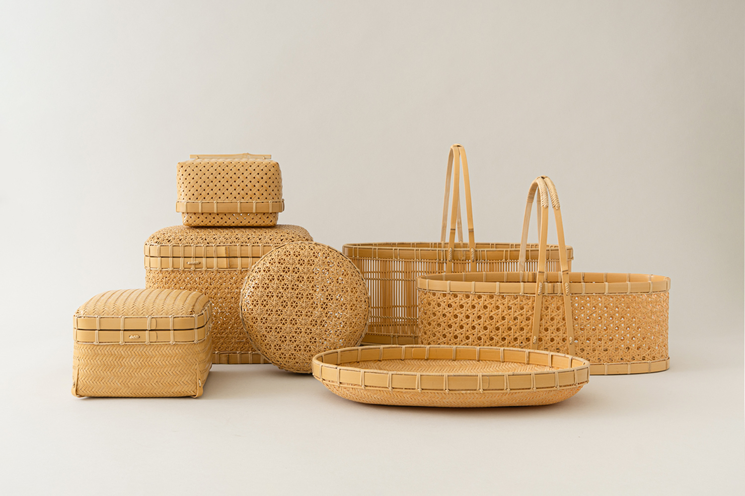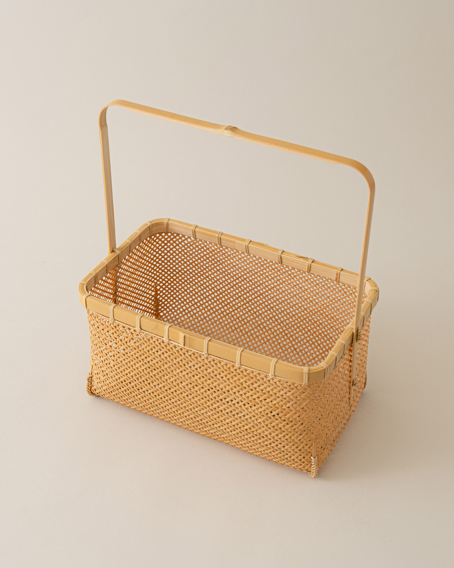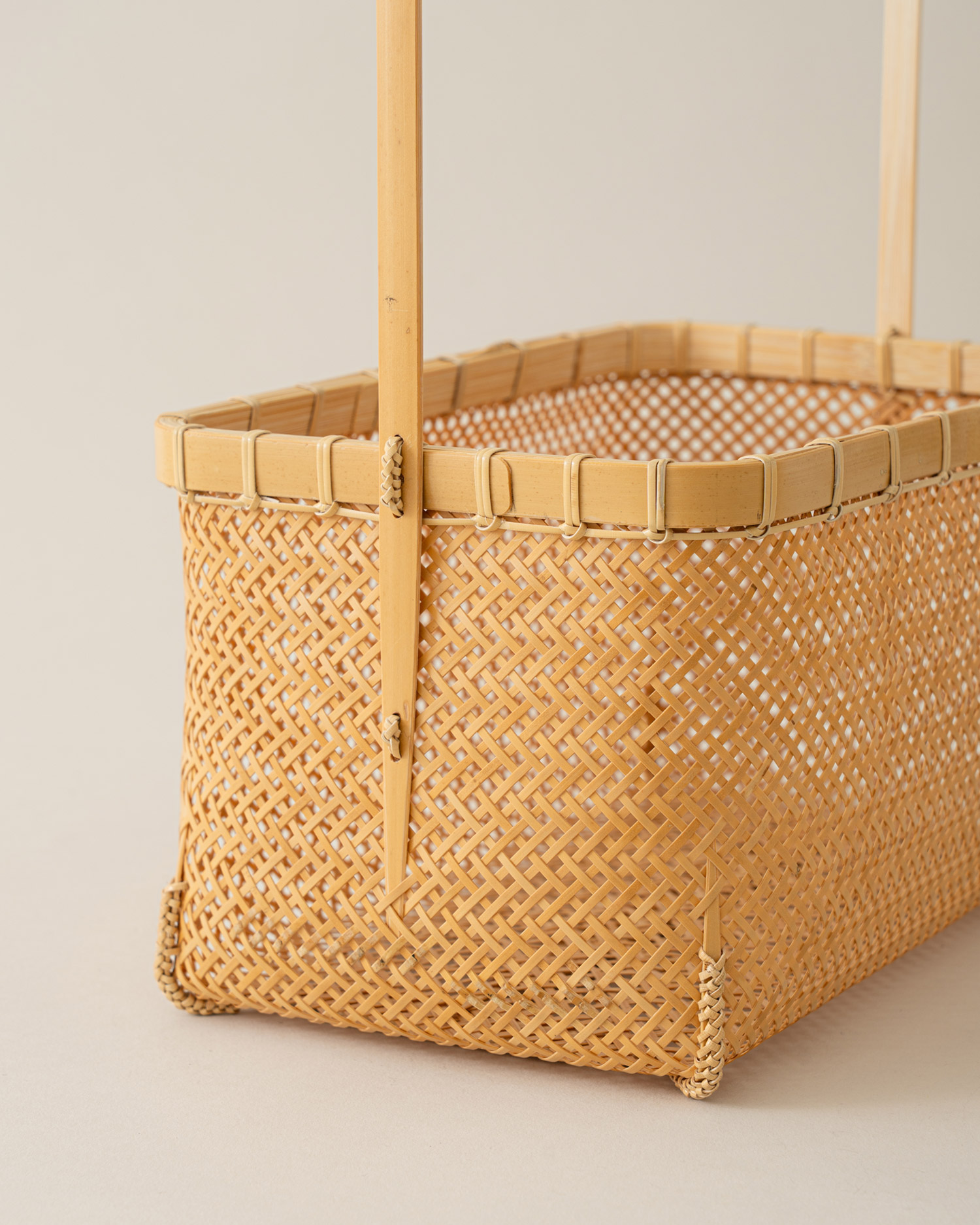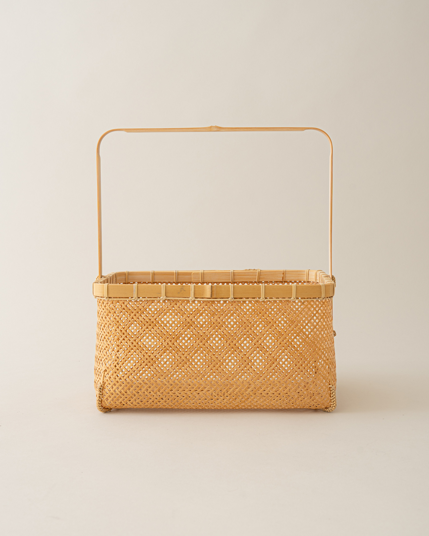 백죽을 다루어 대나무 바구니를 만드는 죽공예 작가 희우의 〈두올뜨기 사각 바구니〉를 소개합니다. 시간이 흐르며 푸른빛이 옅어진 백죽을 다듬어 댓살로 만들고, 이를 촘촘히 교차시켜 엮어낸 바구니입니다.