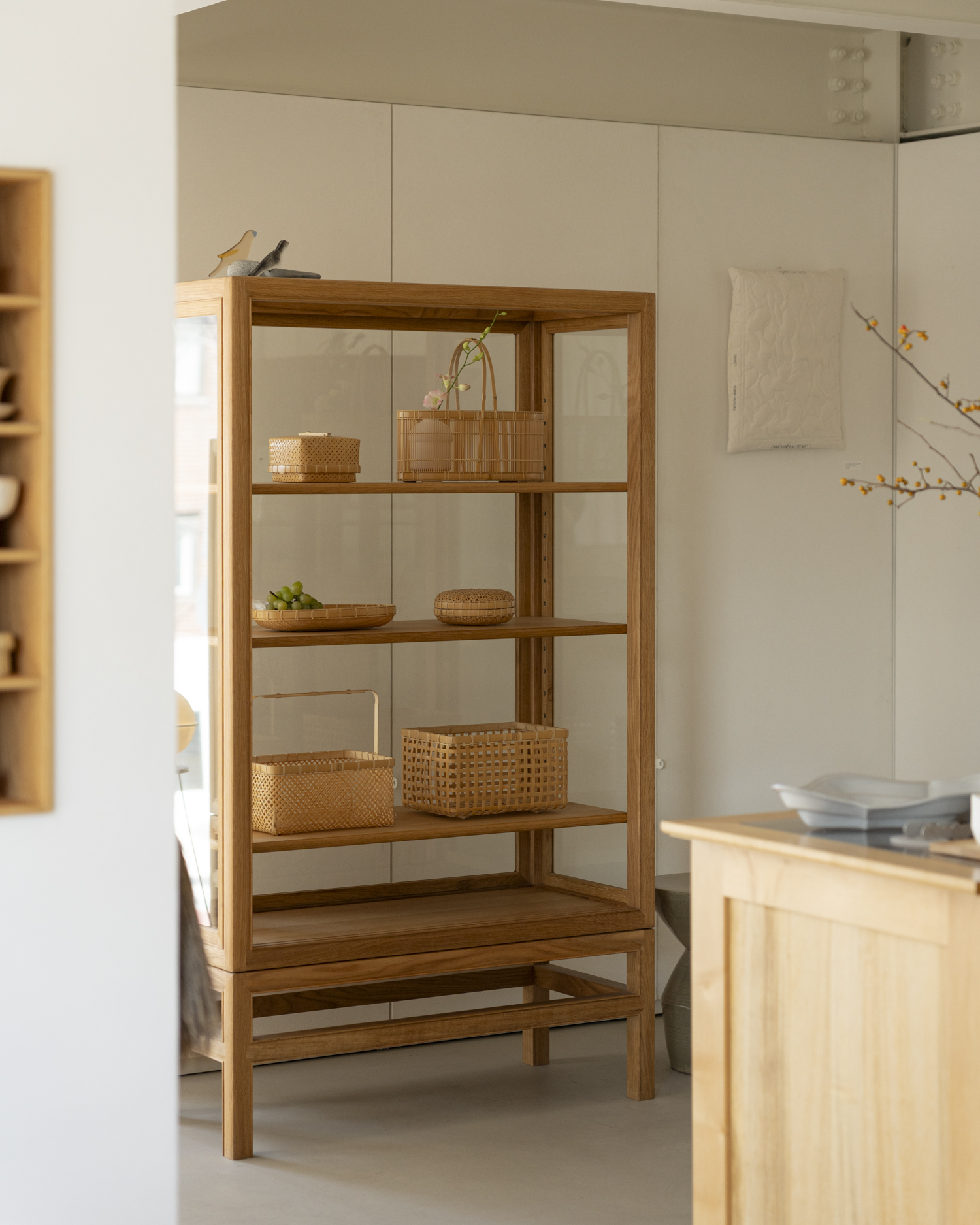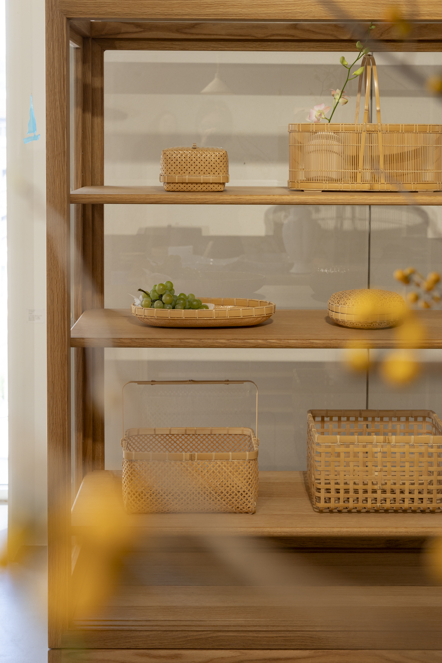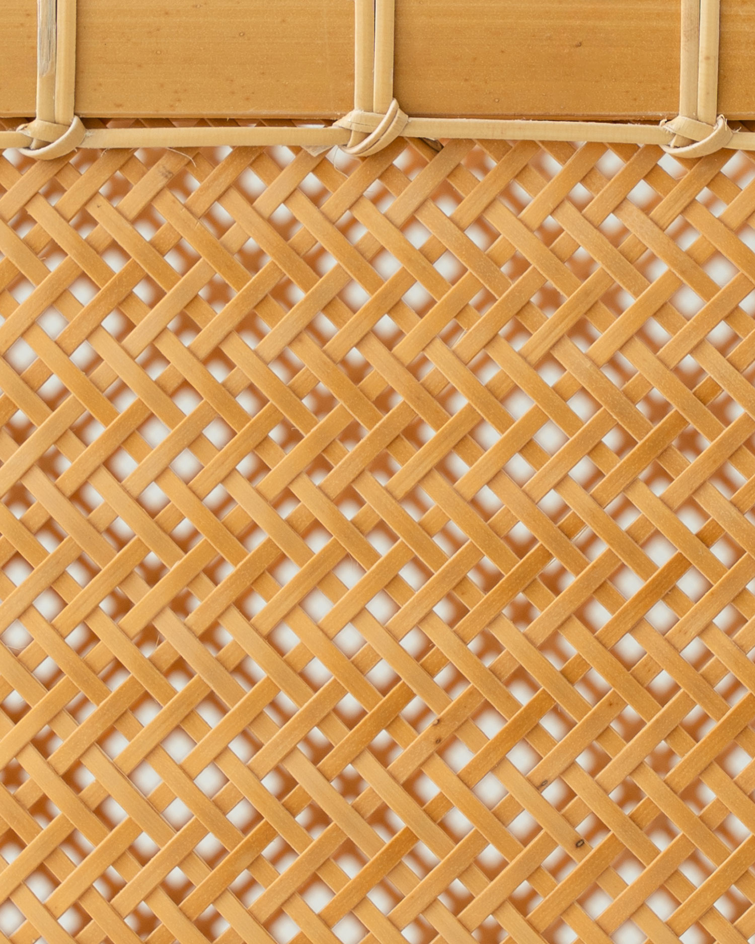 실물로 마주하면 가장 먼저 눈에 들어오는 것은 짜임의 반듯함입니다. 서로 엇갈리며 두 겹으로 얽힌 댓살의 짜임새가 단단한 균형을 이루고, 정연하게 교차한 무늬 속에서 차분한 아름다움이 전해져요.