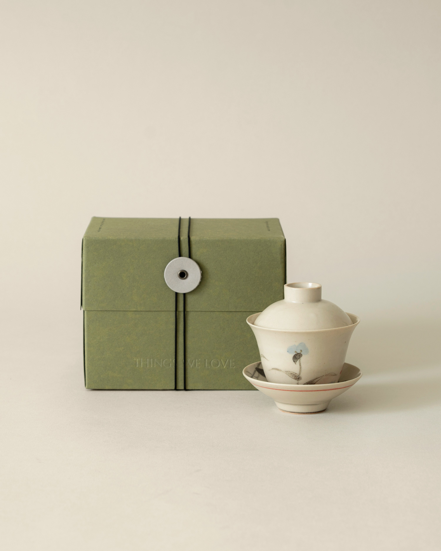 우리 흙과 유약으로 빚은 도자 위에 세필로 섬세한 자연 풍경을 그려내는 〈박종민〉작가의 〈달개비 개완〉을 TWL Original 기프트 박스에 담아 정성껏 포장한 선물 세트입니다.