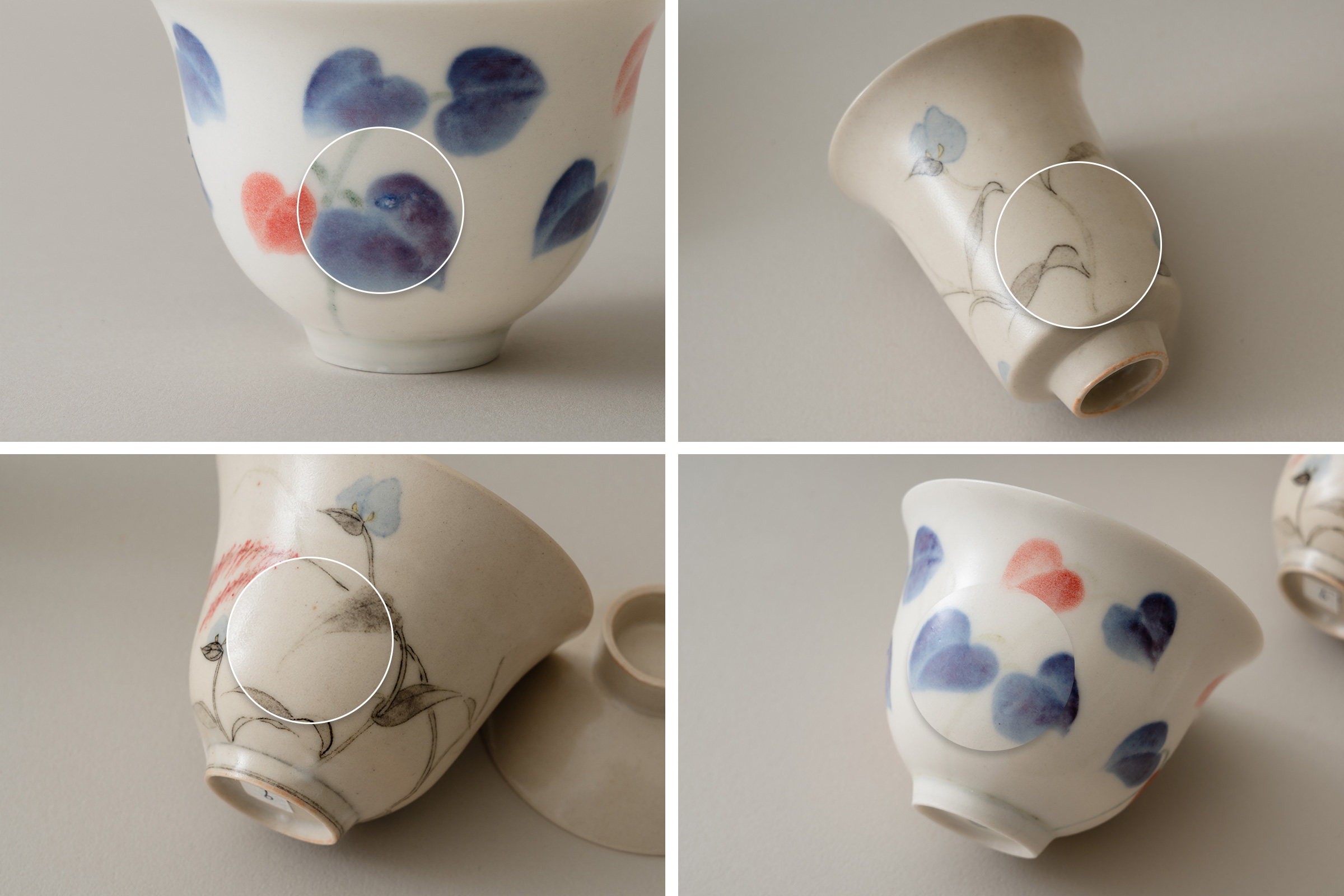 - 핸드메이드 제품으로 유약의 흐름, 색상, 선의 농담, 두께, 광택 등이 모두 조금씩 다르며, 미세한 크기 차이가 있을 수 있습니다.