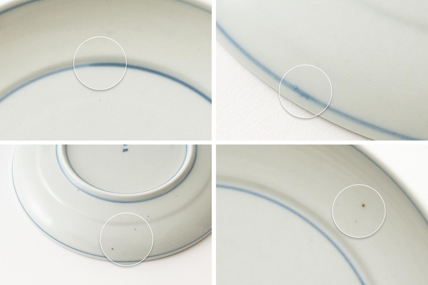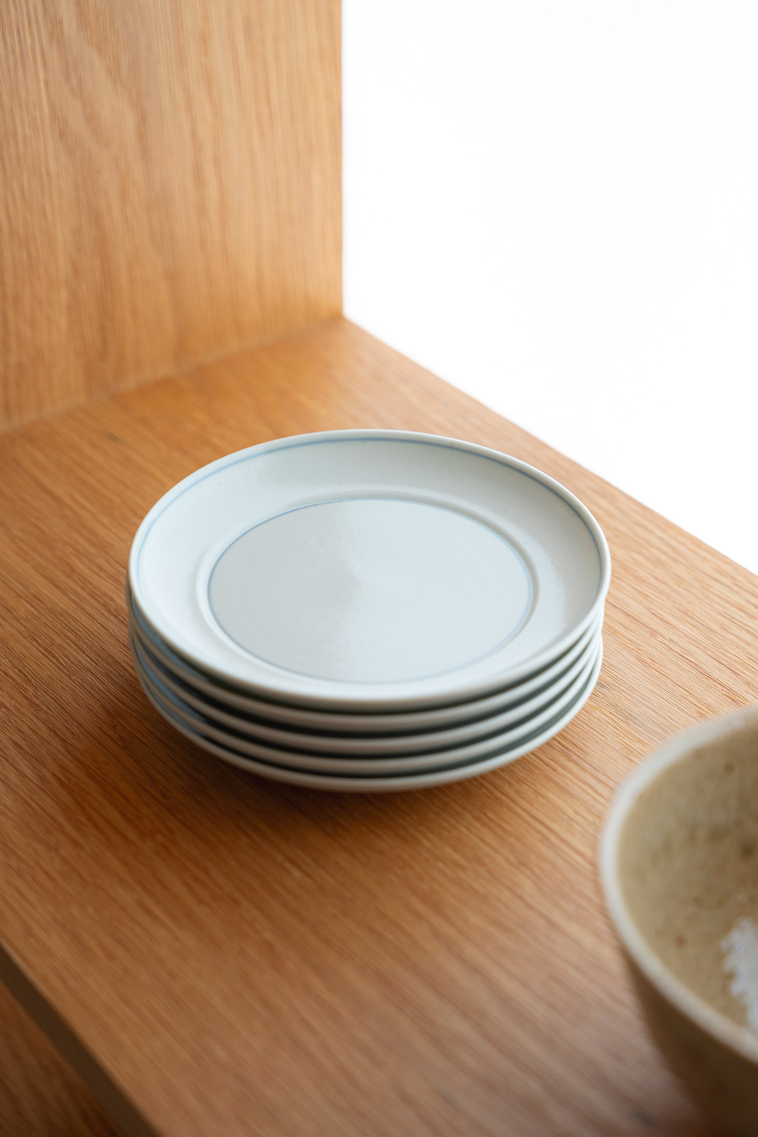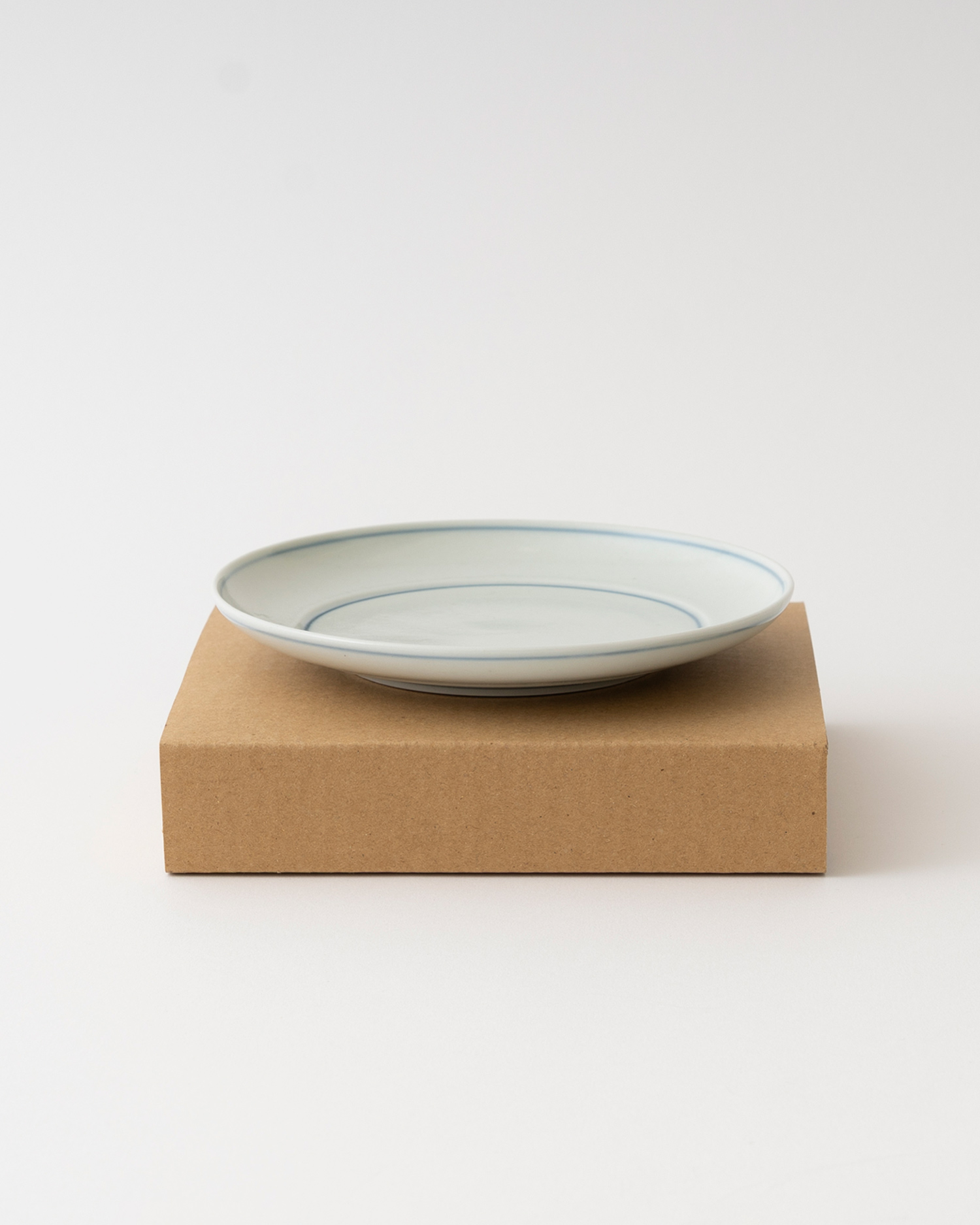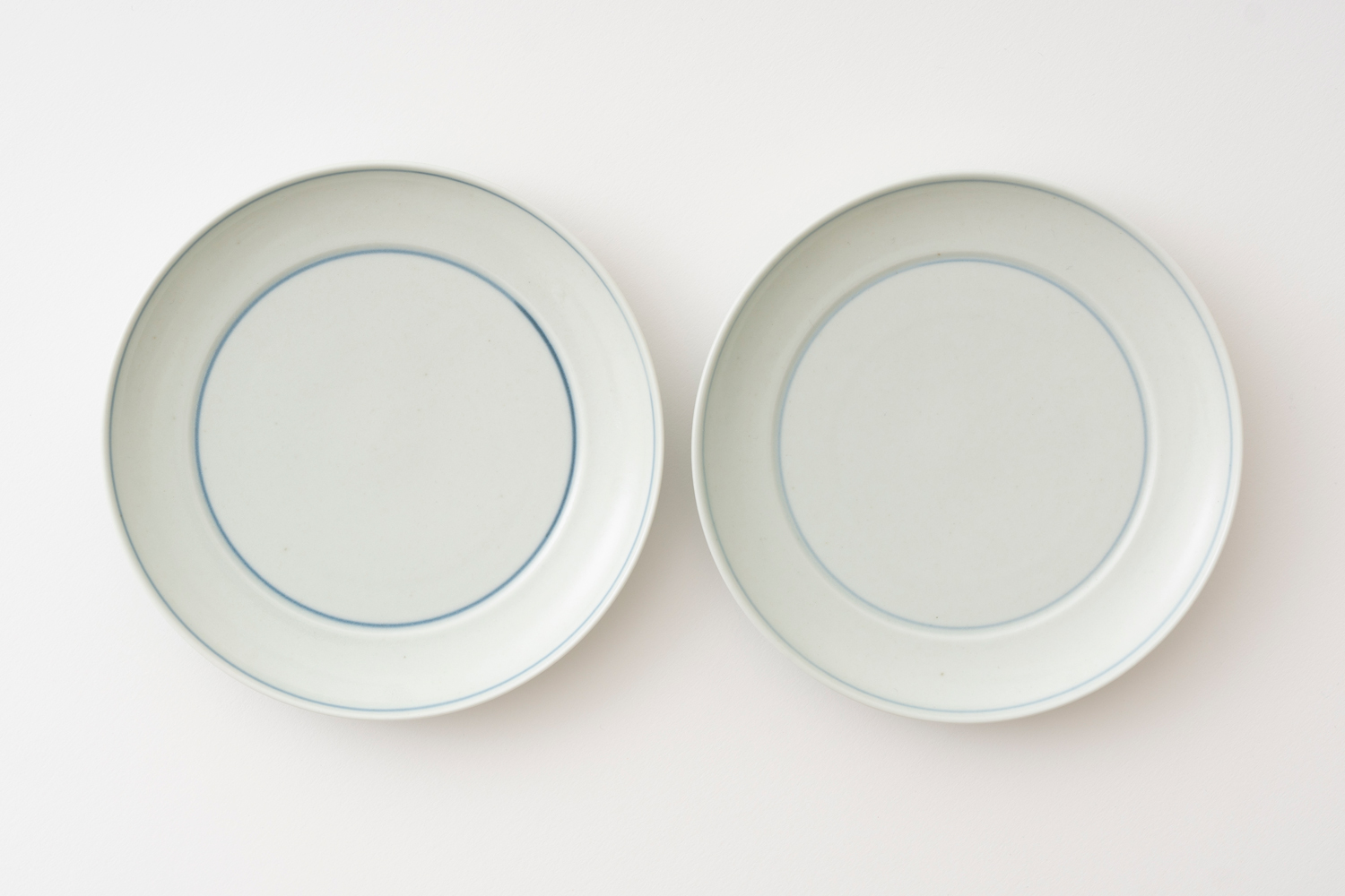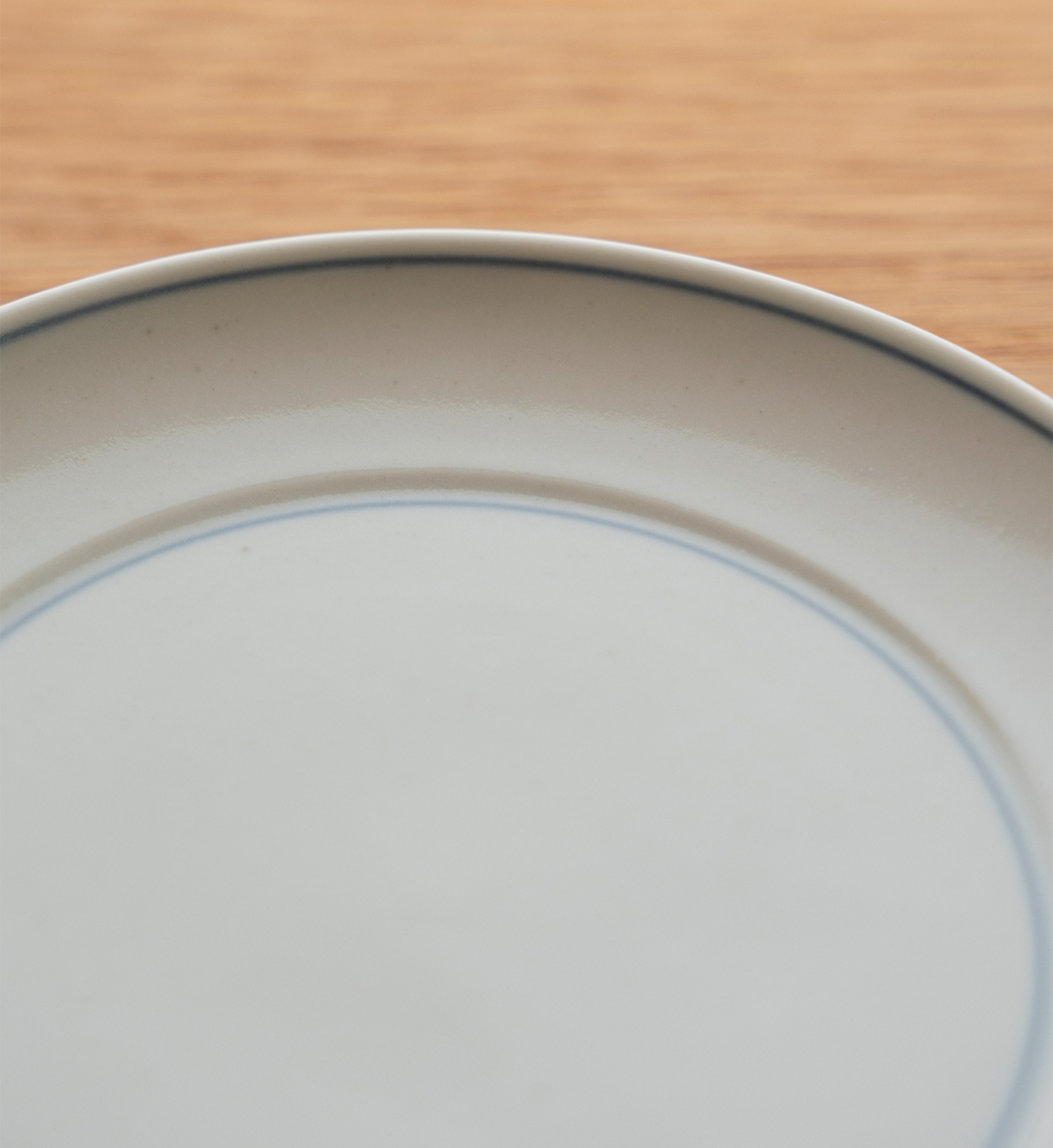 자기(磁器)이지만 표면에 작은 흑점과 요철이 남아 있어, 흙 그릇 특유의 따뜻한 분위기도 함께 느낄 수 있습니다. 푸른 기가 감도는 백자 위로 안쪽 중심과 바깥 가장자리를 따라 가는 선이 둘러진 선은 장인이 하나하나 직접 그려 넣은 것으로, 그릇마다 조금씩 다른 표정을 보여줍니다. |