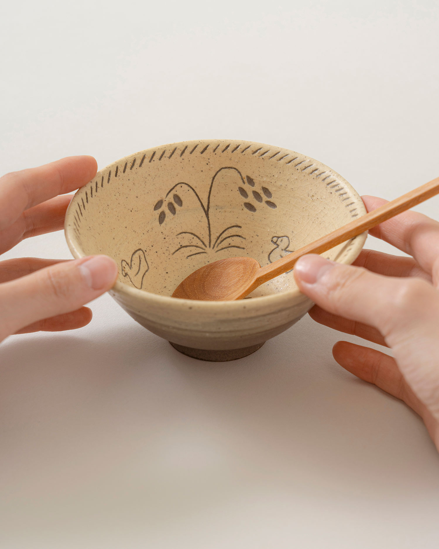 연못가를 산책하며 마주한 오리와 주변의 작은 풍경을 옮겨담은 그릇으로, 작가의 다정한 시선과 자연스러운 질감, 은은한 색감이 어우러져 쓰는 순간마다 따뜻한 온기가 전해집니다.