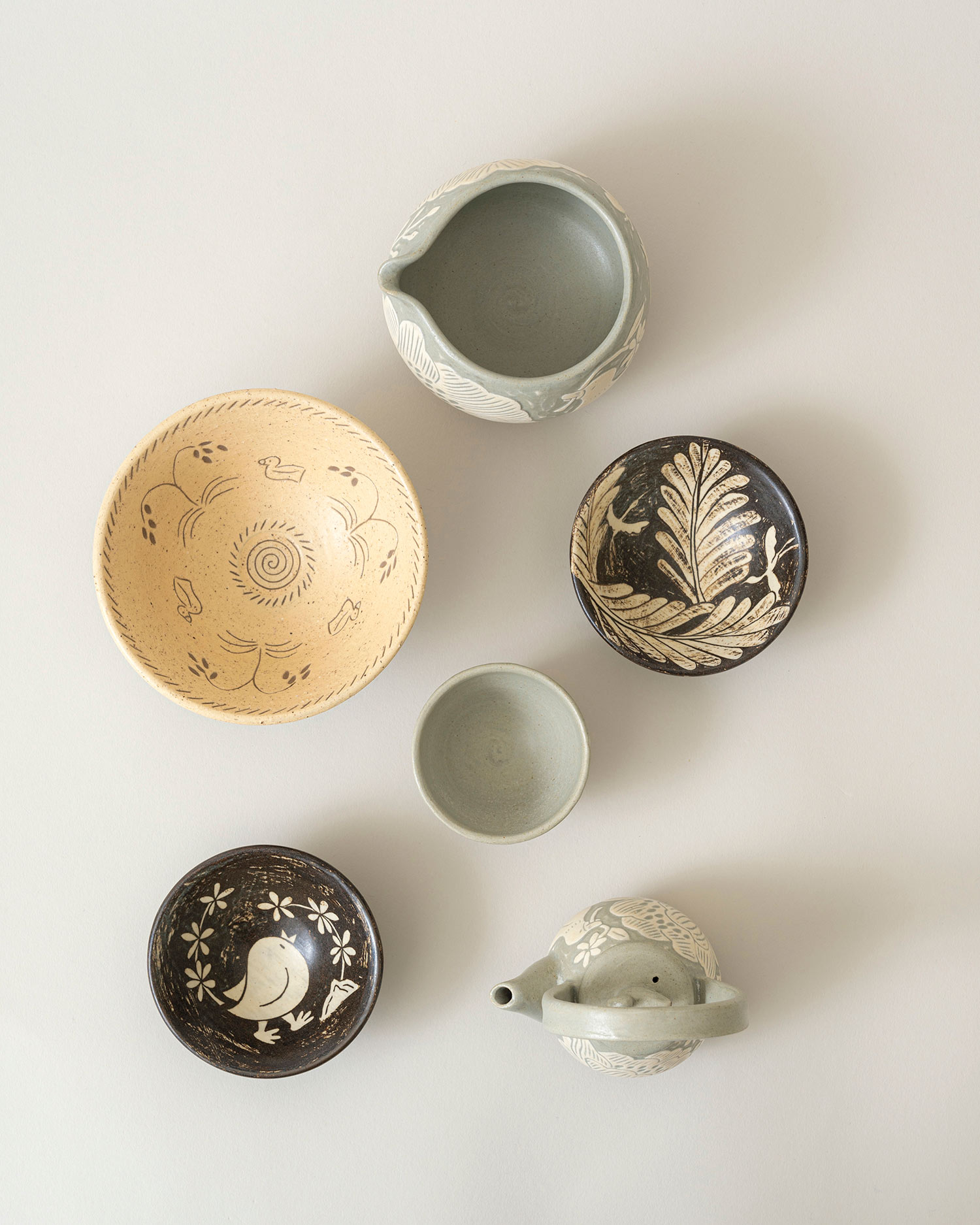 전통 분청의 분장기법과 철채기법으로 자연이 들려주는 서정적인 이야기를 담아냅니다. 사계절의 아름다움 속 생명들의 섬세한 움직임을 작업으로 표현합니다. |