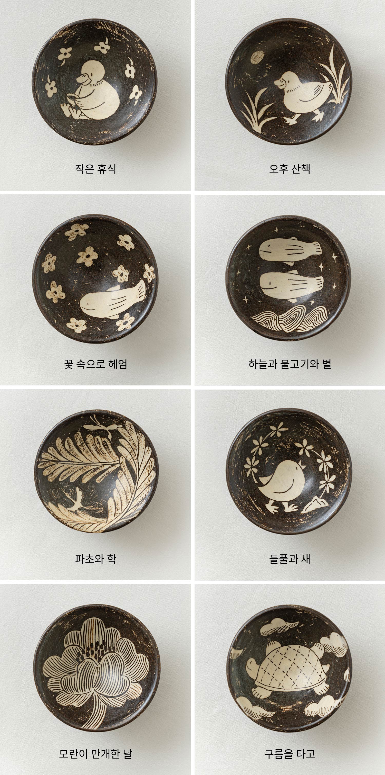 자연의 서정을 담은 철채 그림 잔 자연의 이야기를 섬세히 담은 차 도구와 기물을 만드는 〈전하람〉 작가의 〈철채 그림 잔〉 8종을 소개합니다.