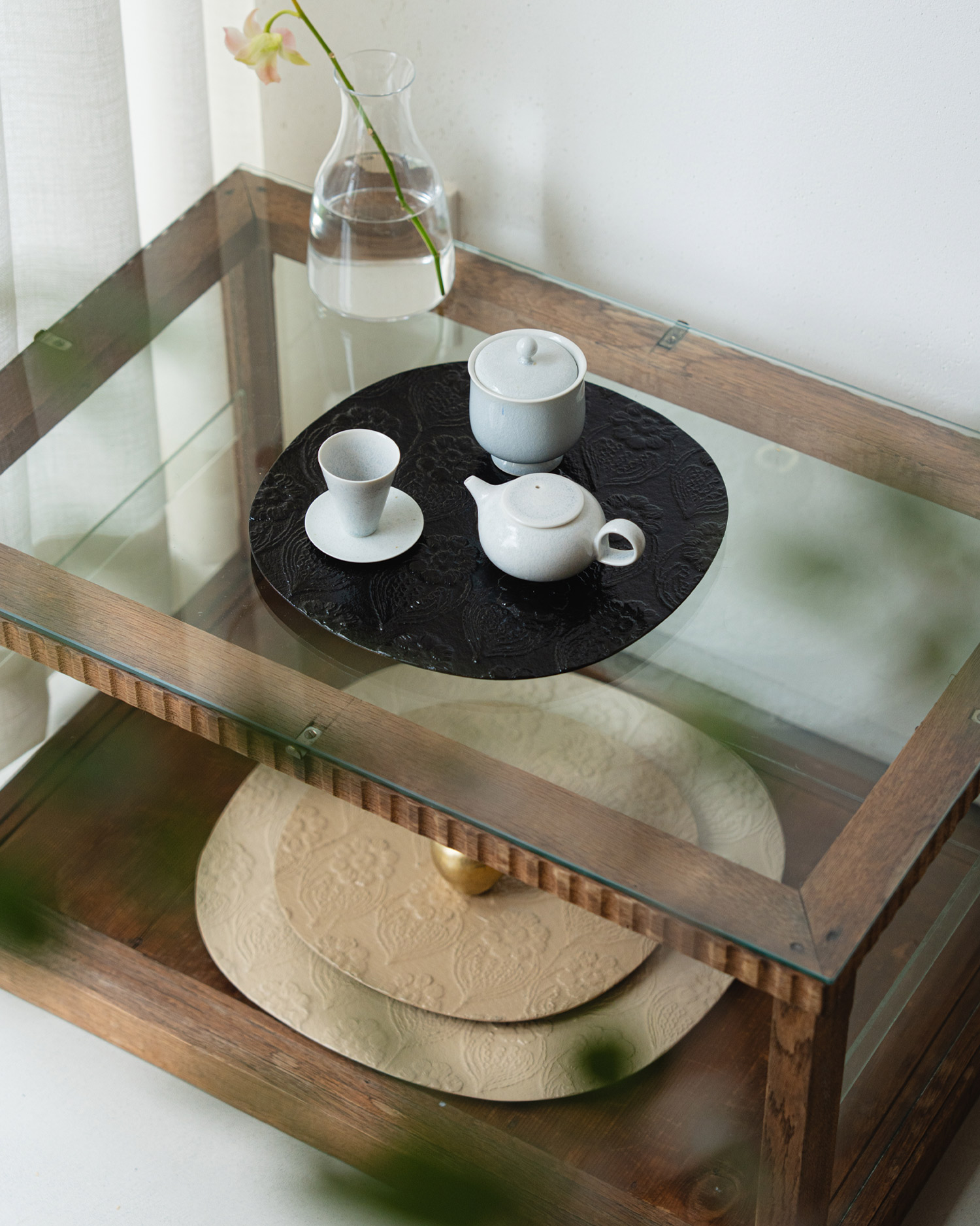 약 25cm 길이의 M 모델은 다관, 숙우, 찻잔을 올려 1인의 찻자리를 꾸리기 좋은 크기입니다. 다른 색상과 크기의 옻칠반과 함께 매치해 한층 완성도 있는 테이블을 연출해 보세요. |