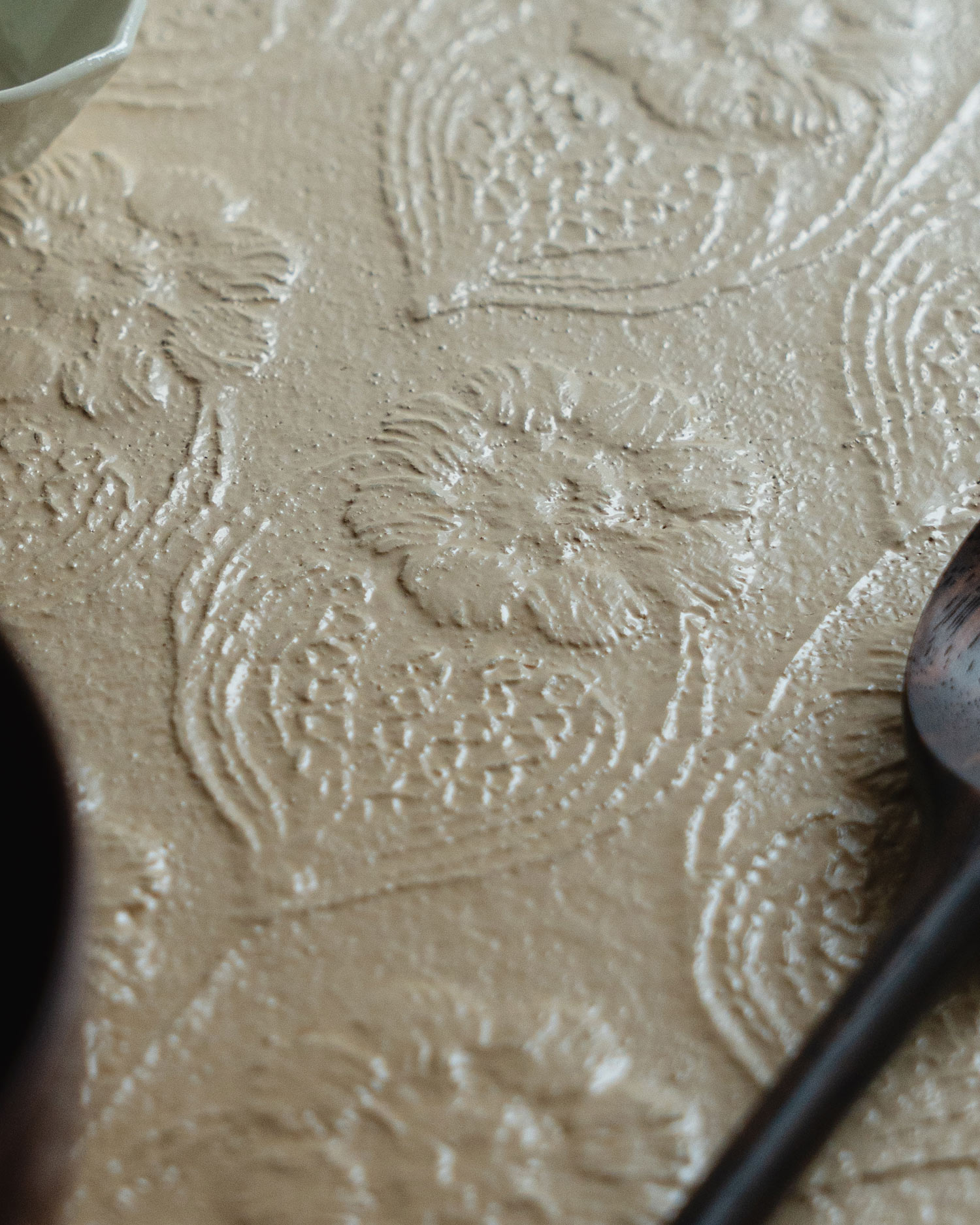 풍성한 플라워 패턴이 마치 꽃다발을 한 아름 안은 듯 산뜻한 생동감이 느껴지면서도, 위에 올려지는 기물의 형태와 색을 돋보이게 해주는 균형이 매력적입니다. 식사나 차를 위한 테이블 매트, 소품 트레이 등 다양한 용도로 활용할 수 있습니다.