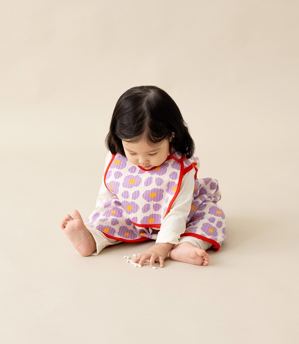 아이의 하루를 밝혀주는 사랑스러운 턱받이 아이들의 상상력과 감성을 자극하는 꽃의 정원을 모티프로 디자인한 〈에콘드〉의 〈플로렌스 턱받이 - 라벤더〉를 소개합니다.
