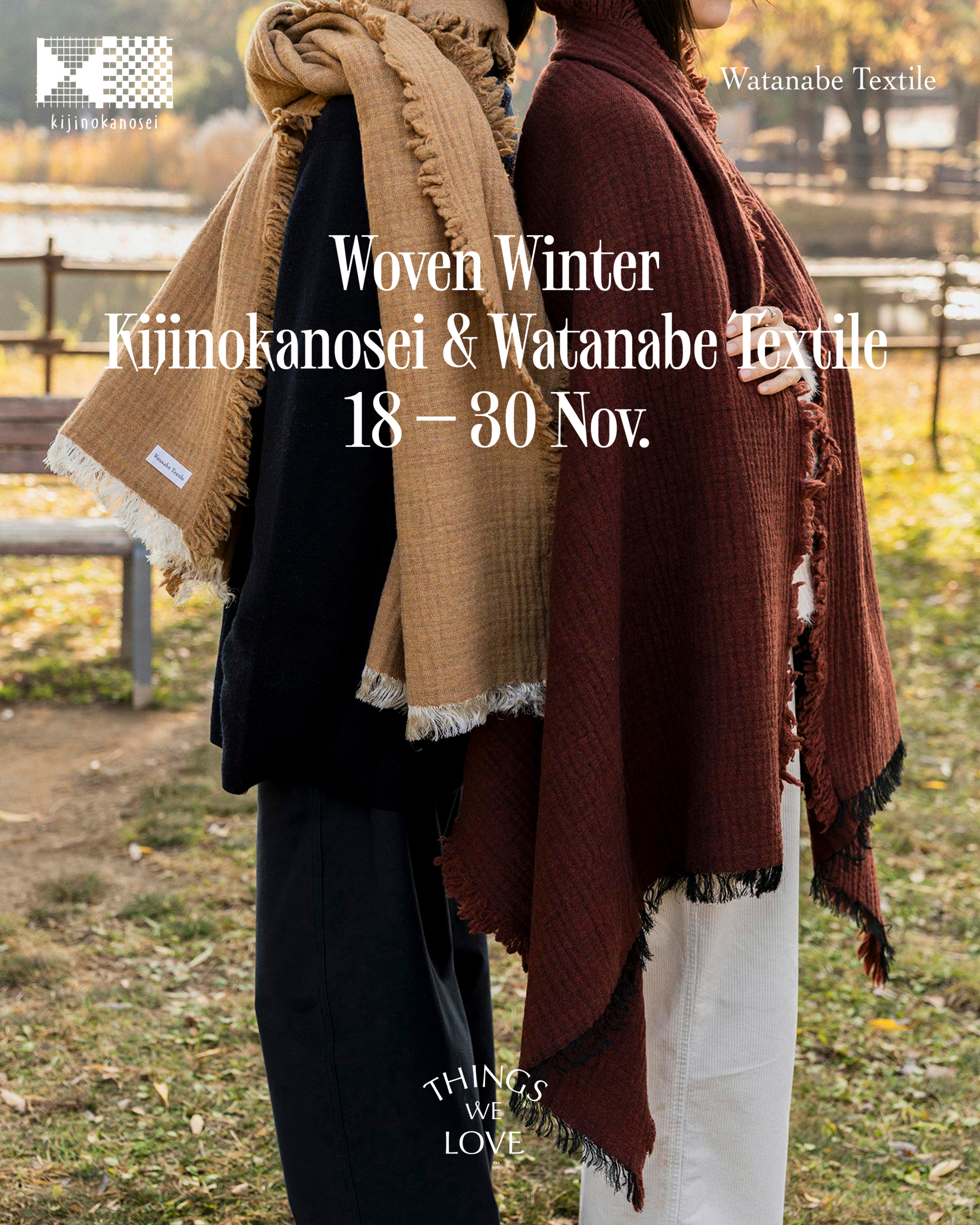 Woven Winter 다채로운 직조 패턴과 생동감 있는 색감이 돋보이는 〈Kijinokanosei〉와, 자연의 고요한 풍경을 담백하고 우아한 직물로 풀어낸 〈Watanabe Textile〉. 포근한 직물의 질감이 마음에 머무는 계절, 이번 기획전에서는 상반된 매력의 두 직물이 어우러진 가을·겨울 컬렉션을 선보입니다. |
