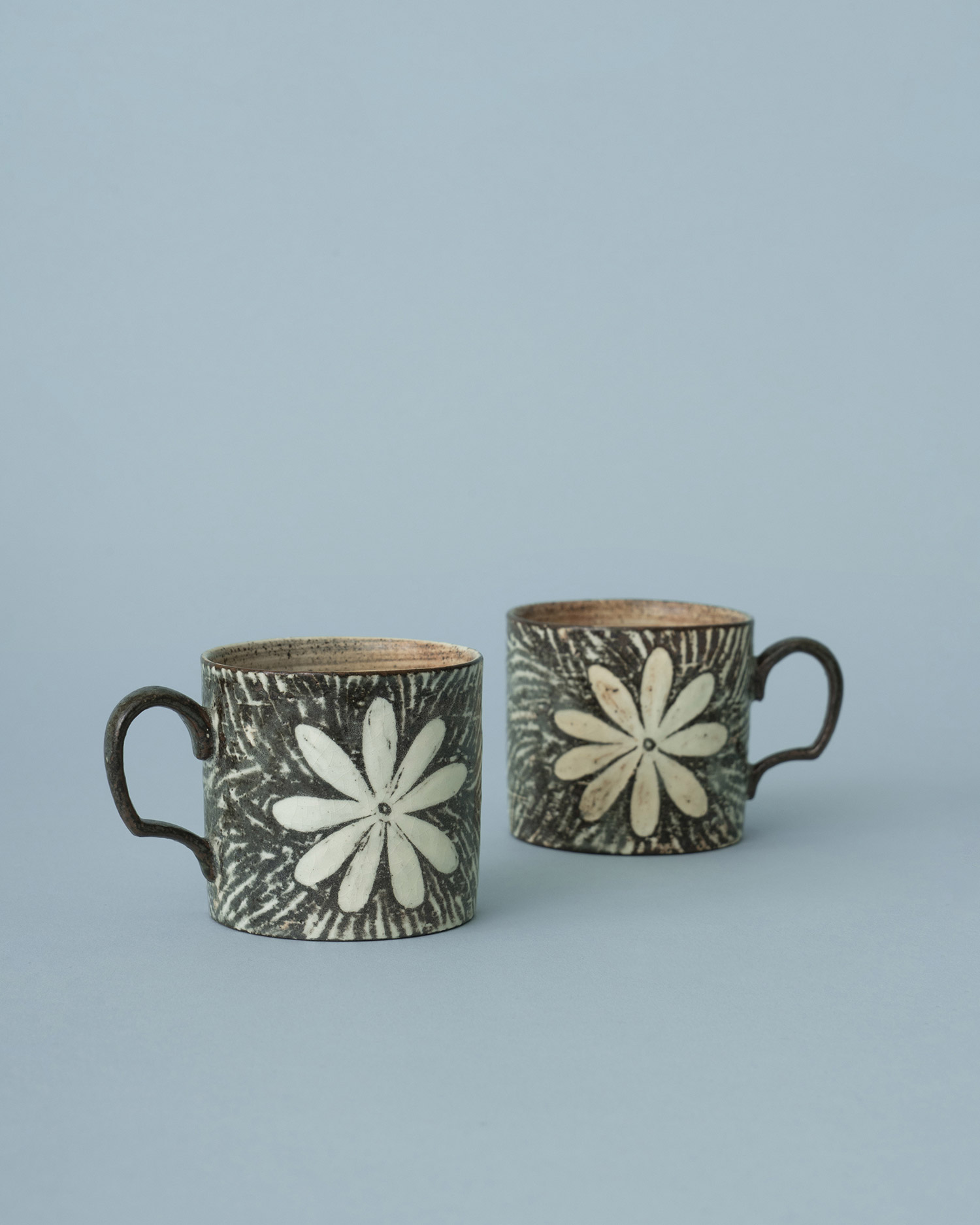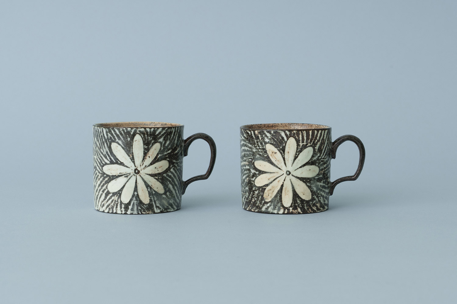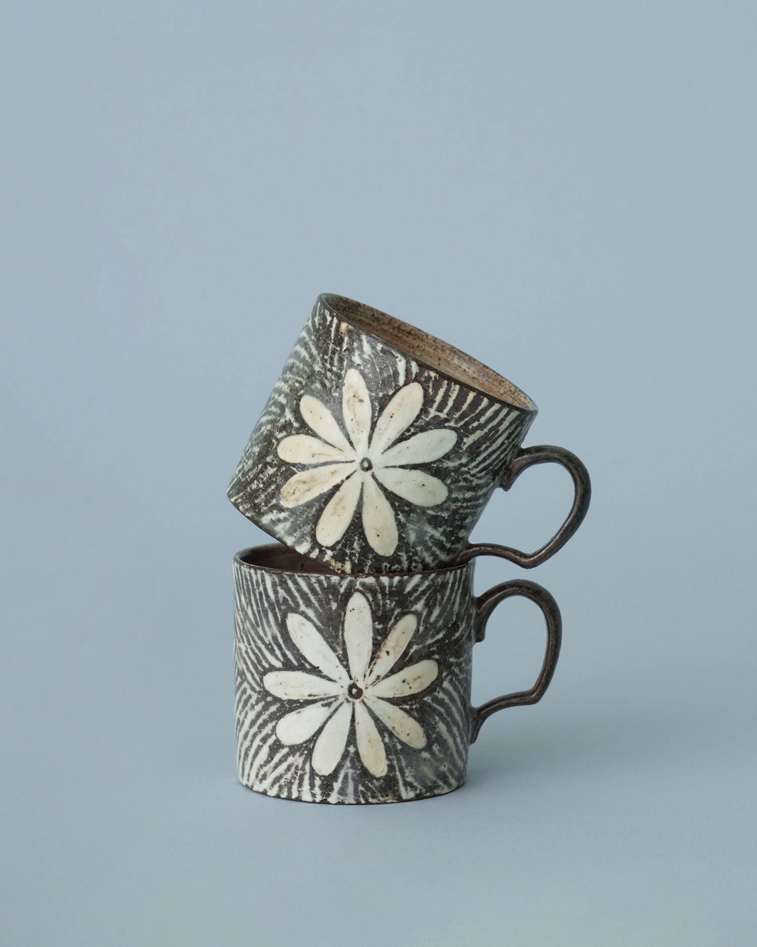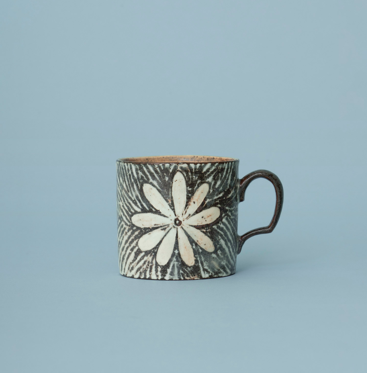 흙의 온기를 담은 분청 머그 분청의 자연스러운 매력이 잘 드러난 정영유 작가의 〈에스프레소 머그〉입니다. 백토와 짙은 토질의 브라운이 대비되며 분청 특유의 깊은 표정이 살아나면서도 꽃 문양이 앙증맞은 컵 크기와 잘 어울리는 머그입니다. 부드럽게 휘어진 핸들로 가볍고 편하게 손에 쥘 수 있어요. 만수 기준 약 120ml의 용량으로 찻잔 혹은 에스프레소 잔으로 사용하기에 좋은 크기입니다.