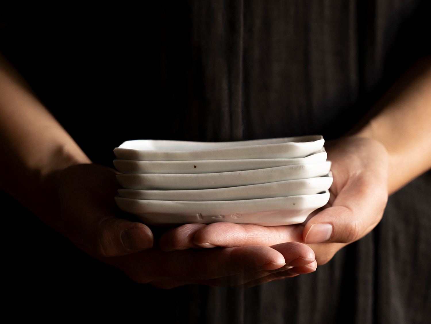 식탁 위 단정한 마침표 아즈마야의 〈Sumikiri Plate〉는 단정한 사각형의 미학이 돋보이는, 식탁 위 작지만 확실한 포인트가 되는 백자 접시입니다.