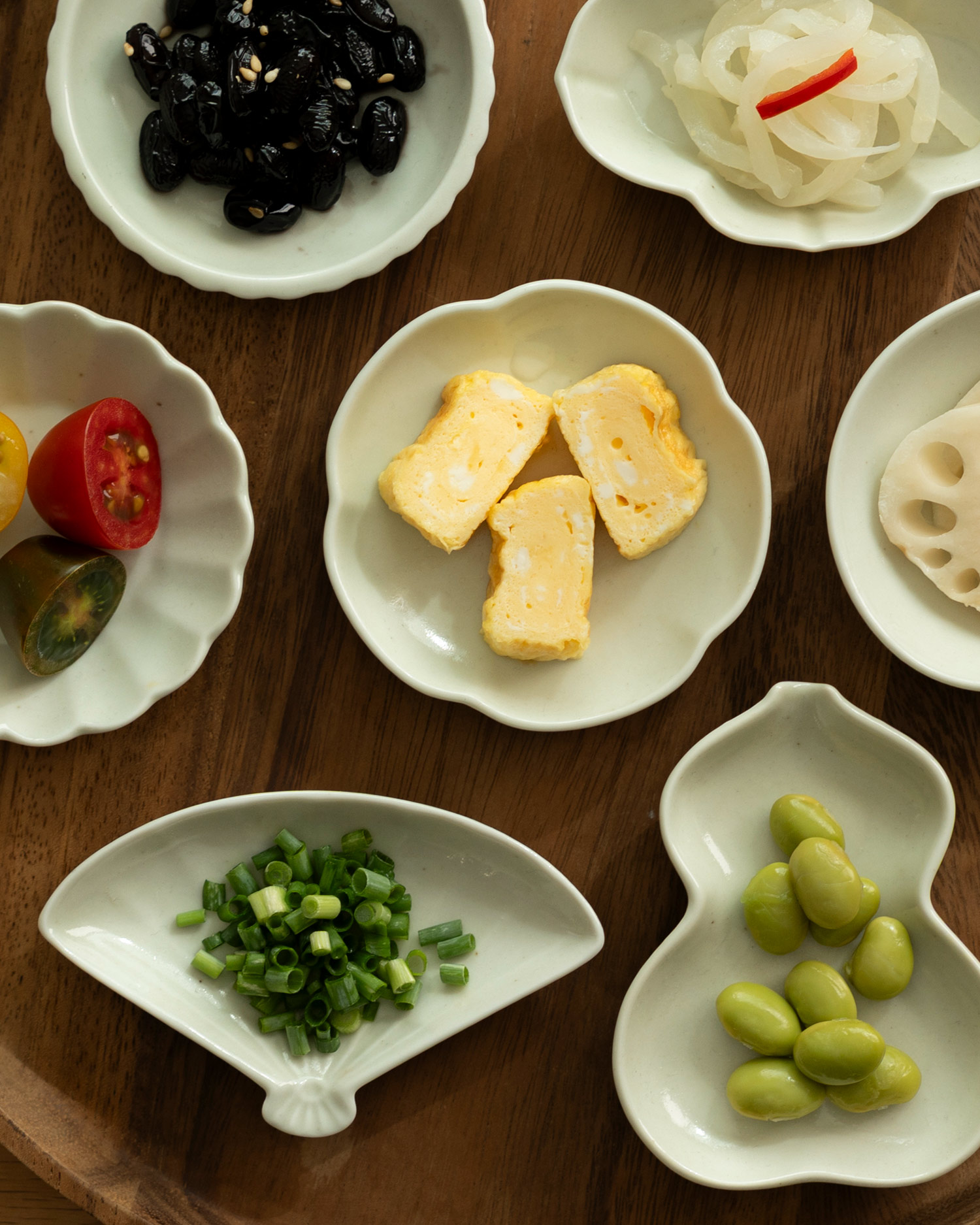저마다의 모양으로 깜찍한 형태와 패턴으로 베스트 셀러인 콩접시. 담백함이 돋보이는 Plain 버전입니다. 아즈마야 인반 시리즈의 파란 패턴이 워낙 많은 사랑을 받아왔기 때문에, '무늬가 없는 버전'은 기대 반, 우려 반이었는데요. 실제로 제품을 마주해보니 ‘도자기토의 자연스러운 질감의 매력’은 파란색 패턴의 경쾌함에 못지 않은 매력으로 다가왔어요.