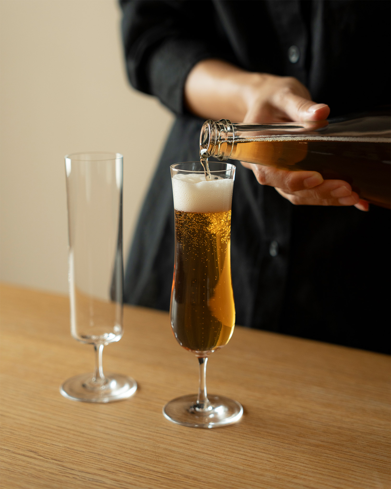 청량함을 머금은 곡선 〈Time&Style〉의 〈Raisin Sparkling Round〉는 부드러운 곡선과 단정한 마감이 균형을 이루며, 기분 좋은 긴장감을 전하는 샴페인 잔입니다. 가느다란 실루엣과 가벼운 무게에도 불구하고 공간 속에서 또렷한 존재감을 드러내는 것은 RAISIN시리즈만의 독보적인 매력입니다.