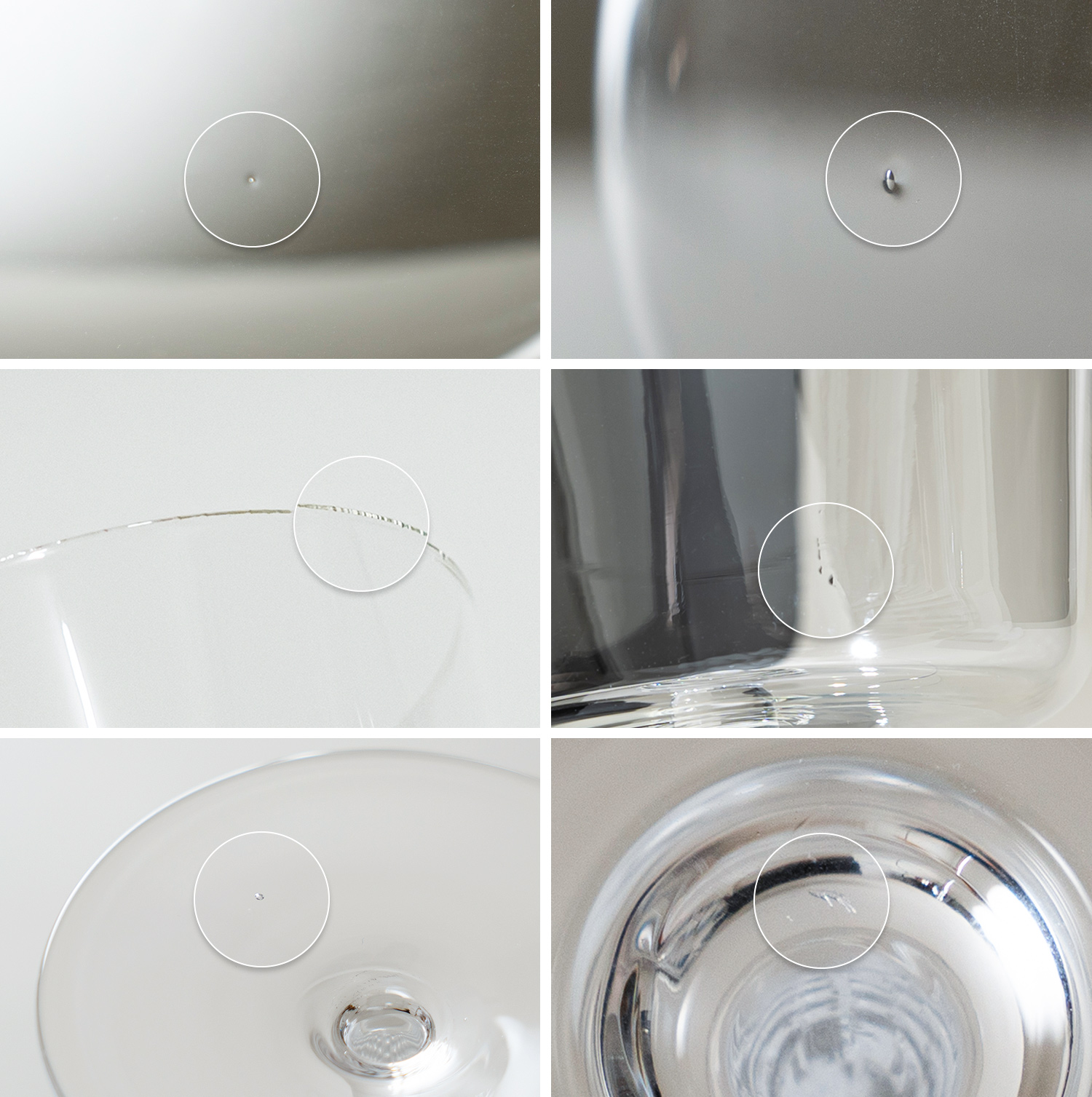 - 수작업으로 제작된 제품이기 때문에 제작 과정에서 용량과 크기의 미세한 차이가 생기거나, 유리 표면에 기포나 선, 주름 현상 등 매끈하지 않은 결이 드러날 수 있습니다. - 입으로 공기를 주입하는 과정에서 기포가 혼입될 수 있습니다. 이는 자연스러운 현상으로 이로 인한 교환 및 환불은 불가하니 신중한 구매 부탁드립니다.
