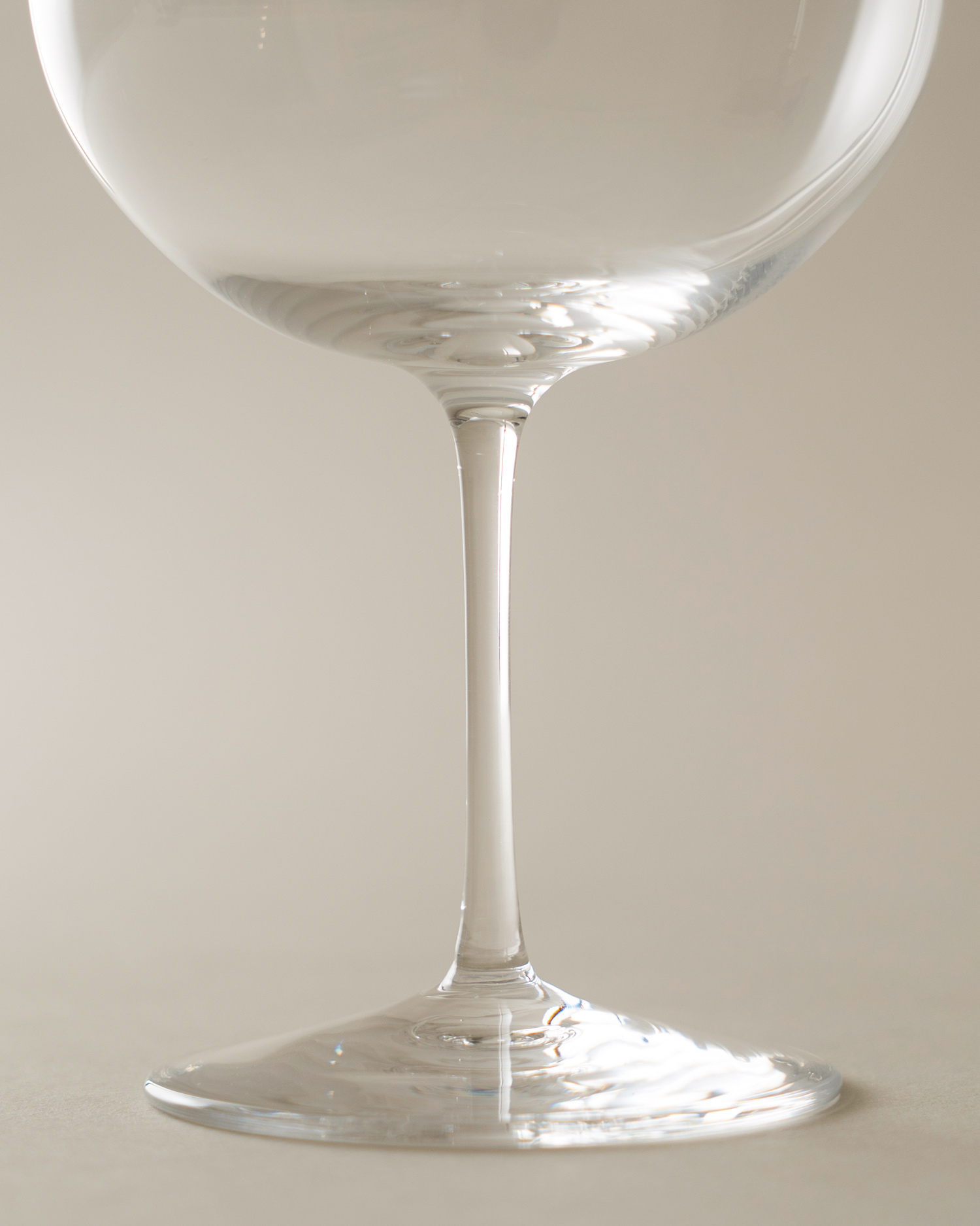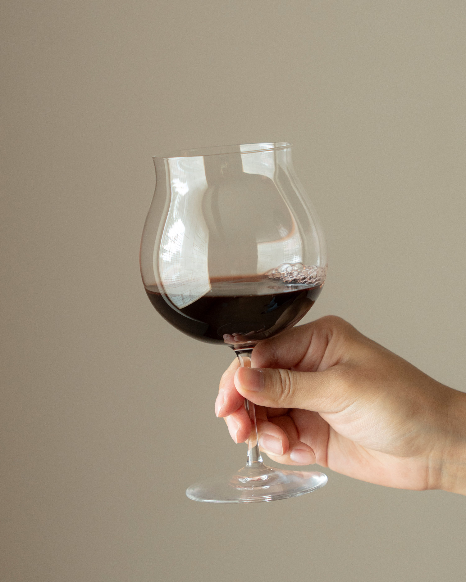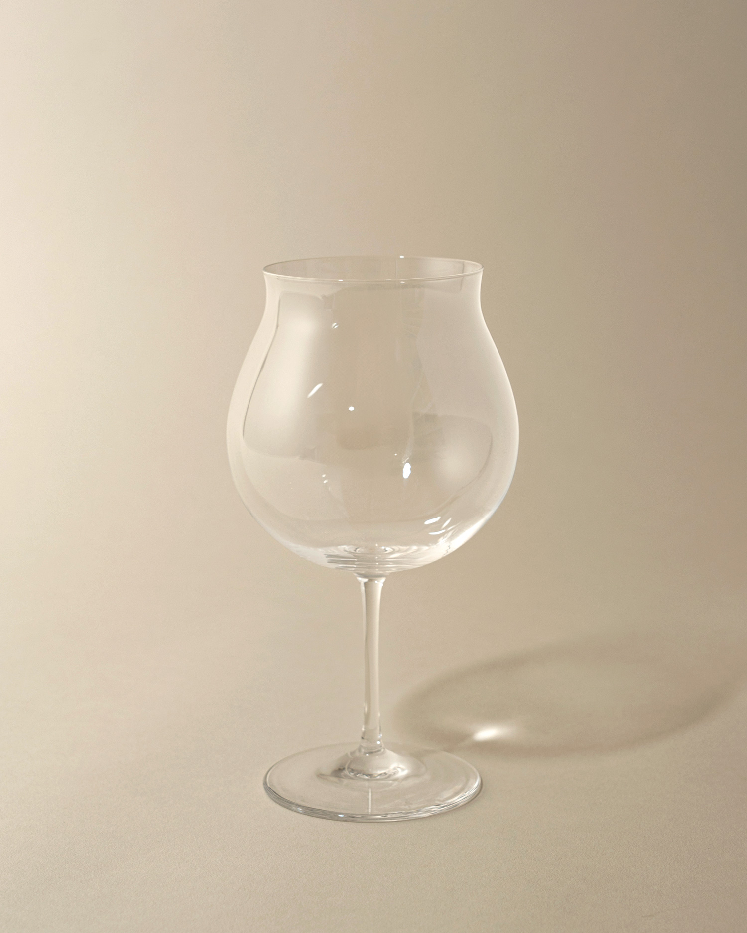 고도의 마우스 블로잉 방식으로 제작되며, 무게감이 거의 느껴지지 않을 정도로 가볍고 얇고 투명합니다. 클래식한 와인잔의 기품과 넉넉한 포용력, 아름다운 곡선이 돋보입니다. |
