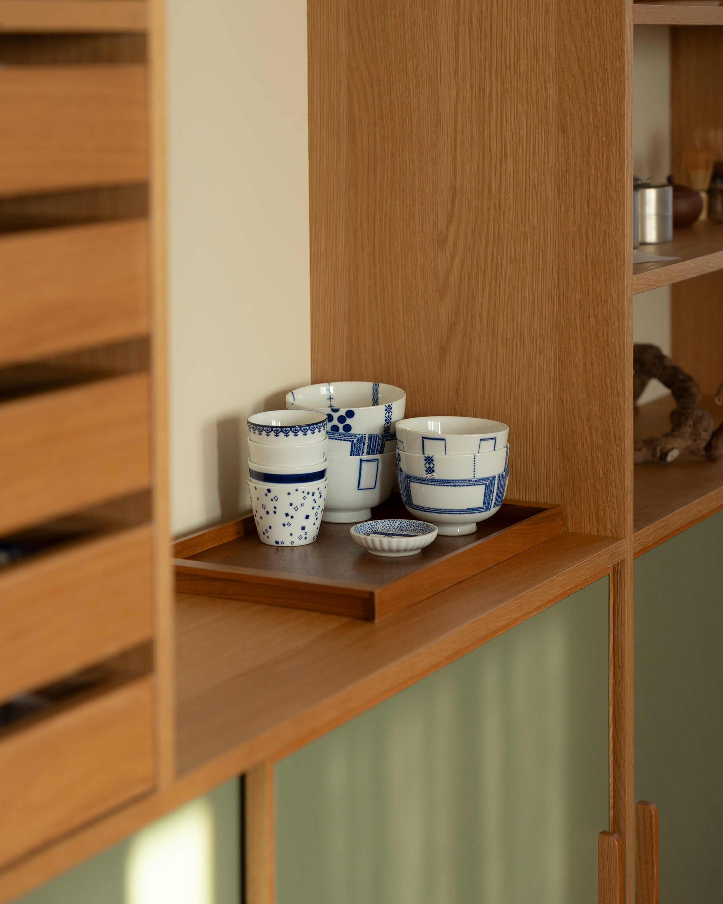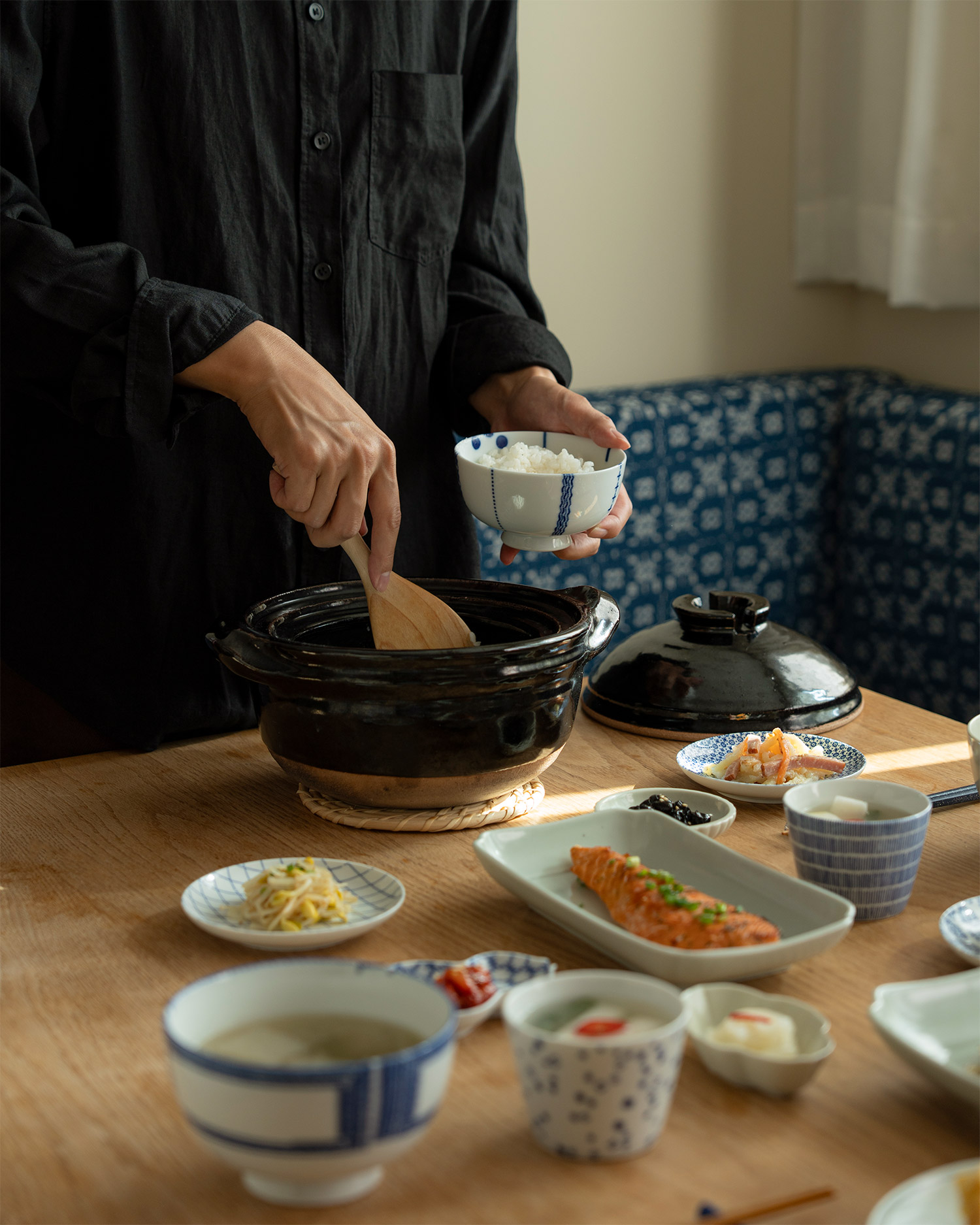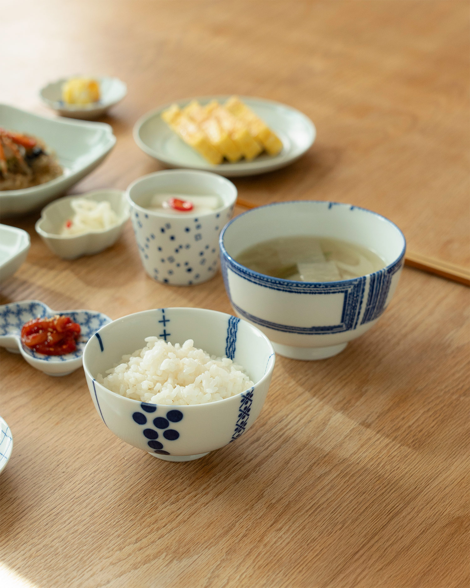 눈길이 머문 일상의 장면 일상의 풍경에서 영감을 얻은 3가지 패턴이 담긴 2가지 크기의 보울입니다. 꽃가지, 창가, 거울을 모티브로 한 패턴 디자인은 일본 아티스트 타치바나 후미오의 작업이에요. 청명한 블루와 깨끗한 화이트의 조합이 조합이 단아하면서도 생기가 느껴지는 인상입니다. 밥은 조금 적게, 반찬은 많이 먹자는 주의로 평소의 밥그릇으로는 S 사이즈를 애용하고 있습니다. L 사이즈는 살짝 더 넉넉한 크기로 덮밥이나 단팥죽 등을 즐길 때 다용도로 활용하고 있습니다.
