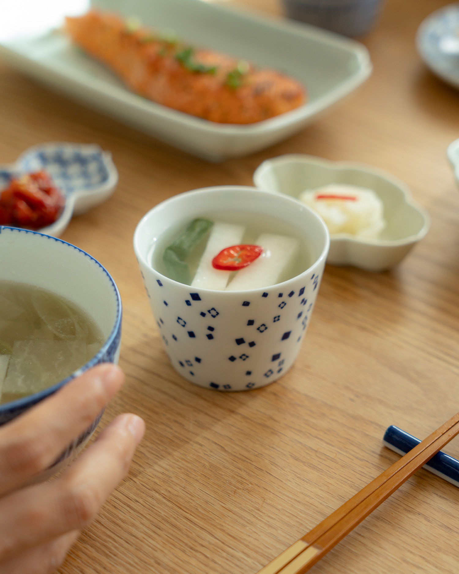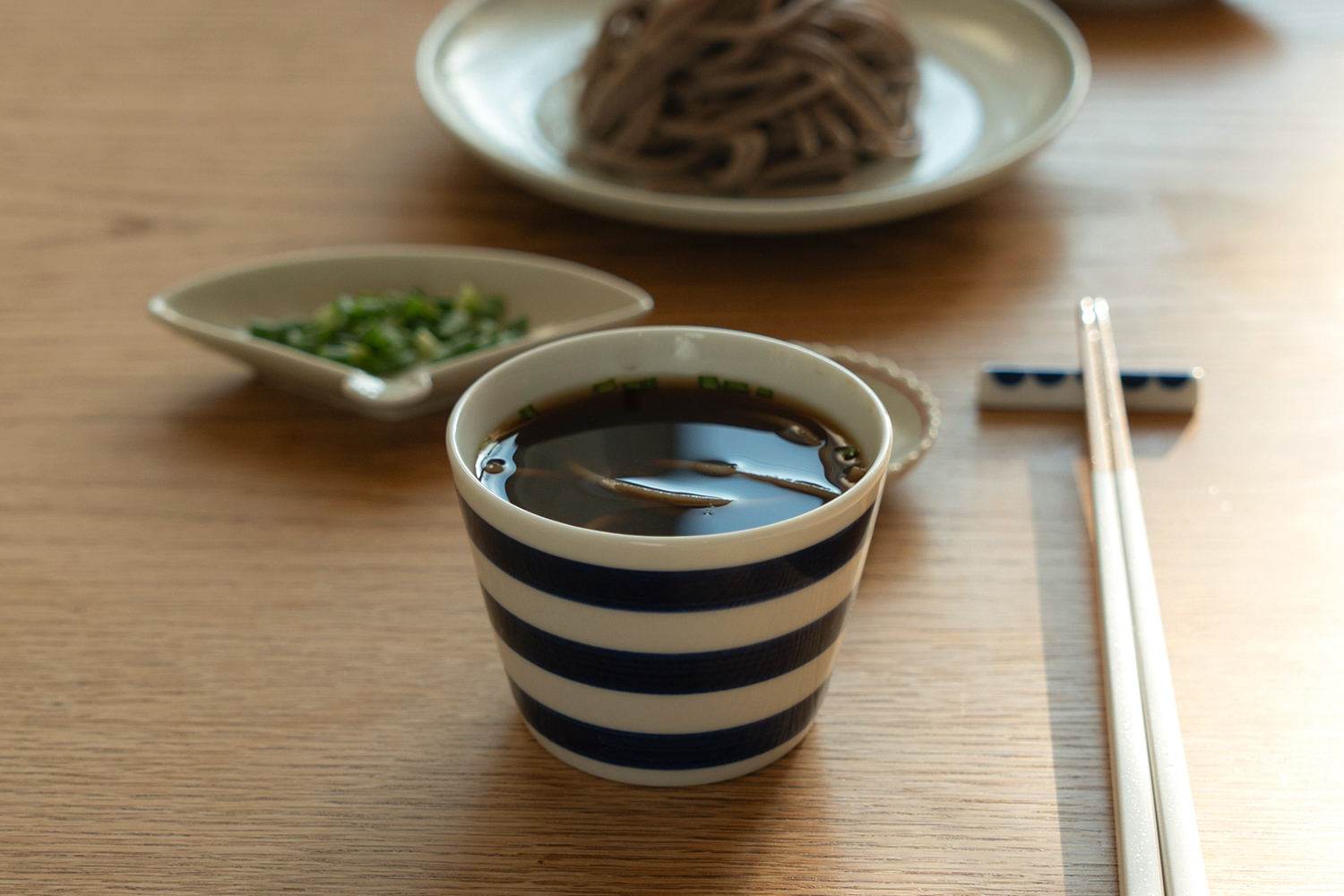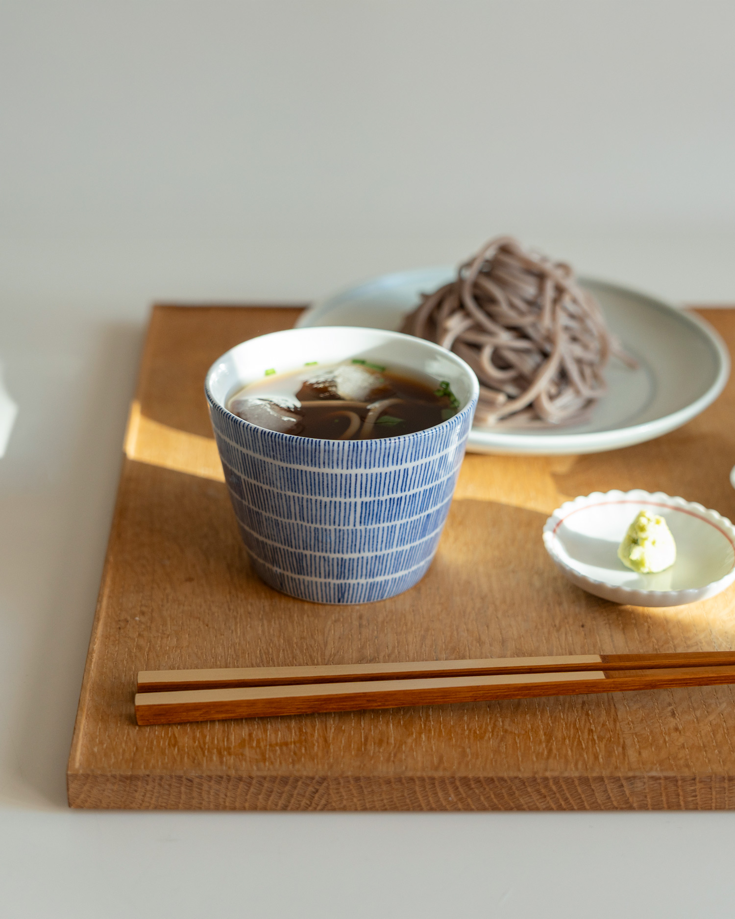 습관처럼 매일 꺼내 쓰는 이름은 소바컵이지만, 한 가지 용도로 제한되지 않는 컵입니다. 따뜻한 차를 마실 때나 차가운 정종 한 잔을 따를 때도 자연스럽게 손이 갑니다. 작지만 적당한 깊이가 있어 1–2인용 반찬을 담거나 물기 있는 찬을 내기에도 알맞습니다.