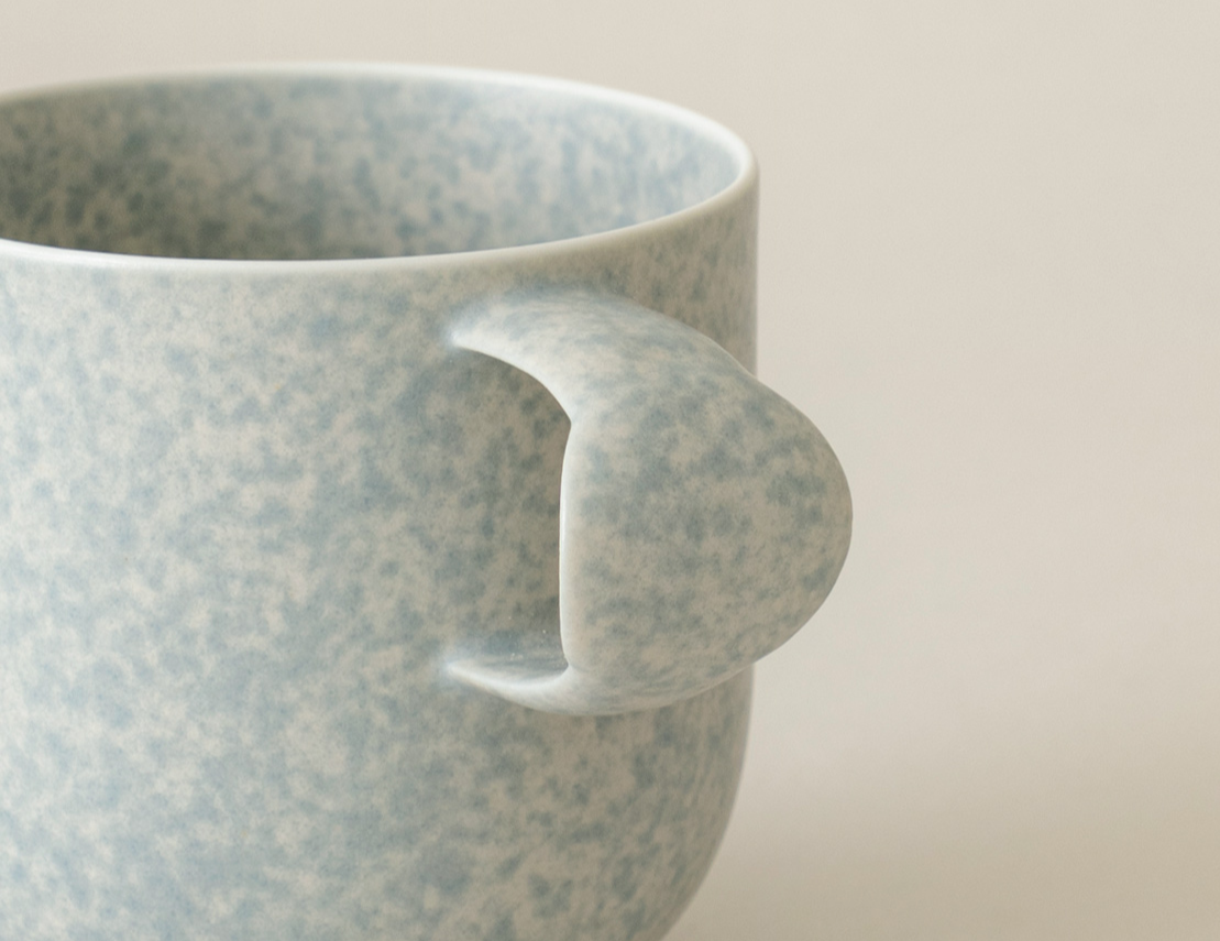 가장 먼저 들어오는 건 특유의 둥글둥글한 분위기와 독특한 핸들 라인입니다. 크기가 크지 않아도 컵 자체가 가벼워 부담 없이 들 수 있어요. 직접 써보면 작은 디테일이 더 와닿는데요, 바닥이 평평하게 마감되어 세척 후 건조할 때 물이 고이지 않아 식기세척기에 돌리기에도 좋습니다.