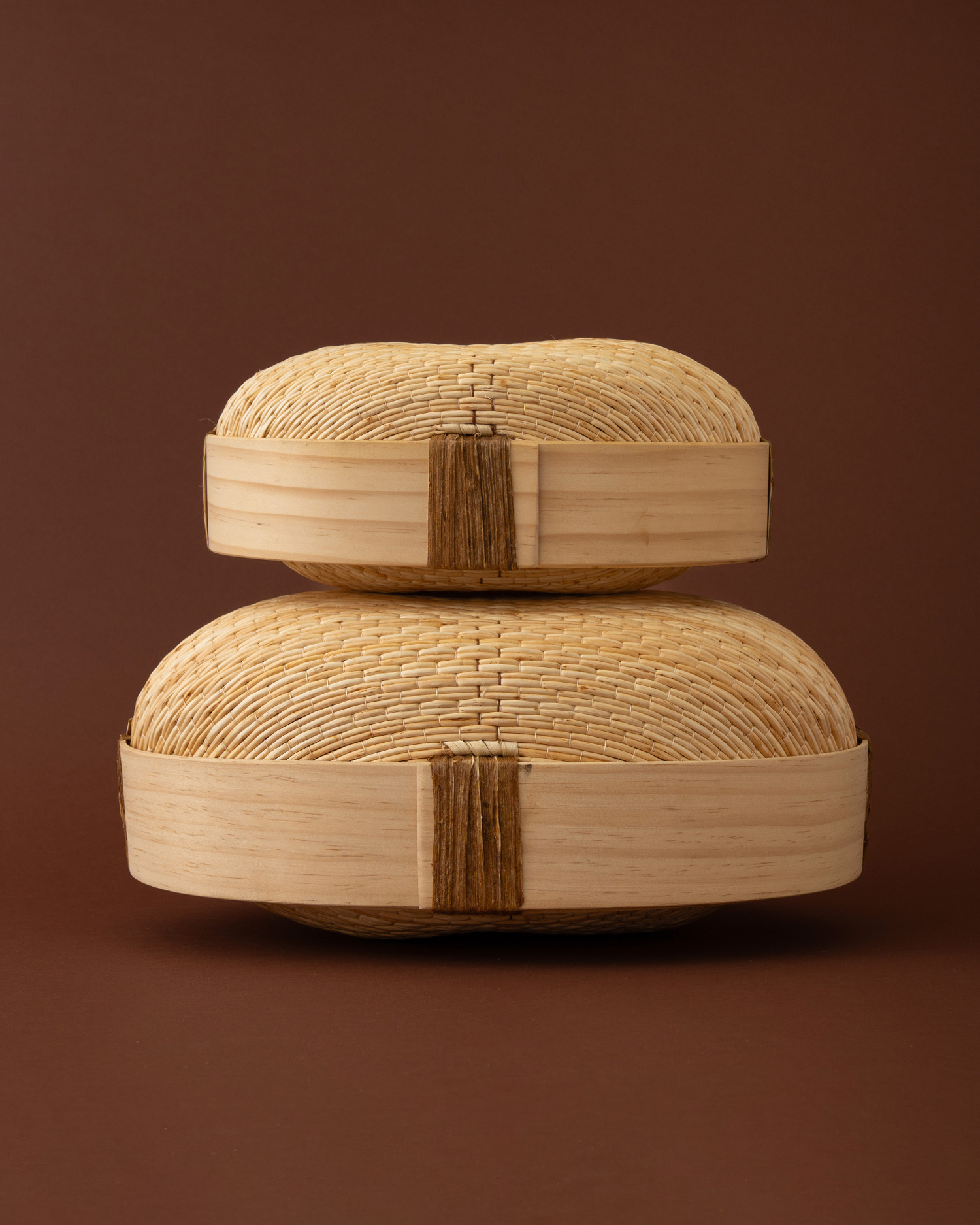 다양한 물건을 수납하여 사용할 수 있고 공간에 그냥 두어도 그 자체로 아름다워요. 덮개를 분리하여 2개의 바구니로 사용해도 좋겠습니다. 공간의 정취를 더하는 공예품으로 권해드립니다. |