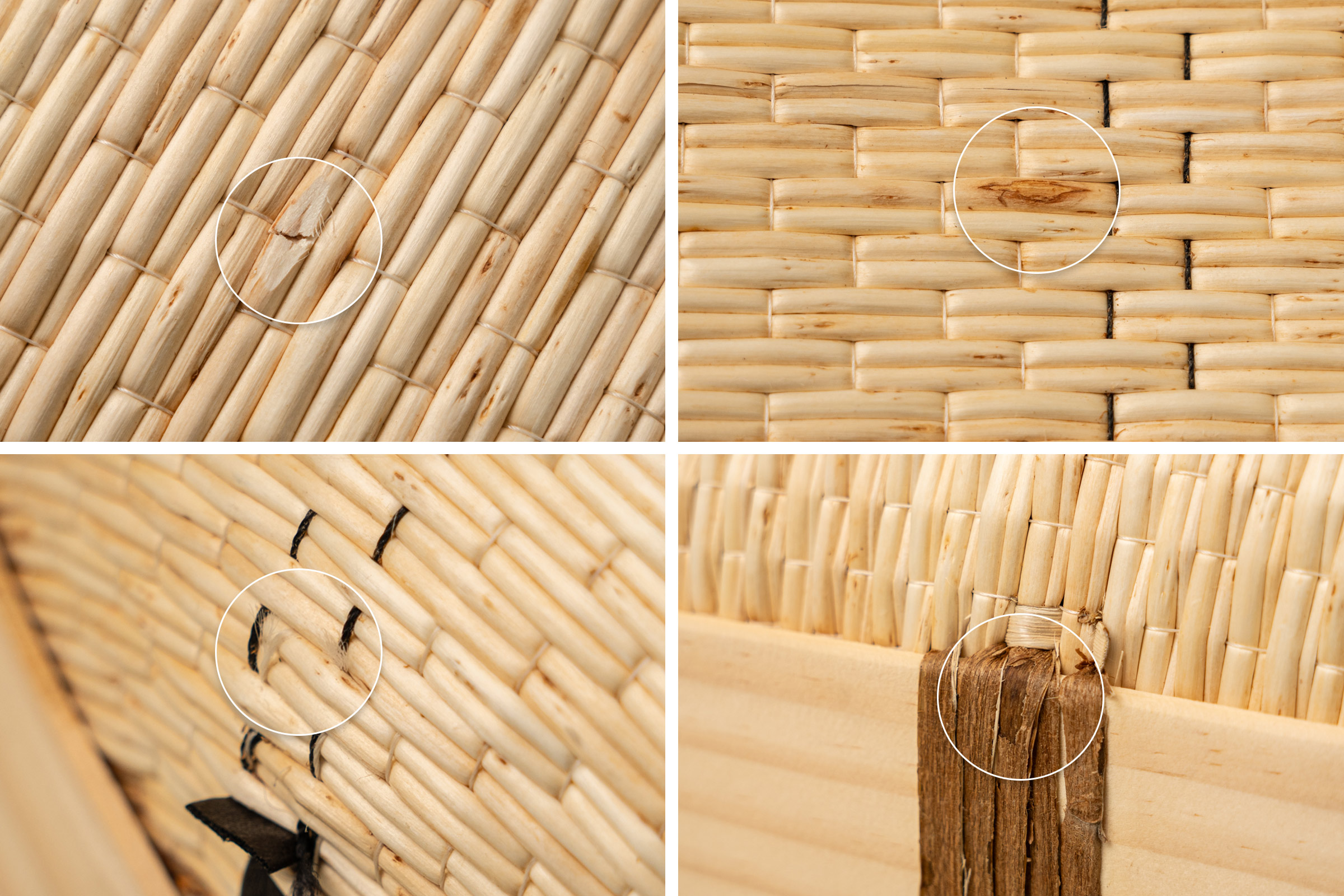 - 수작업 특성상 명시된 크기와 차이가 있을 수 있습니다. - 천연 소재 특성상, 버들의 색상 차이, 나뭇결의 갈라짐, 작은 흠과 결점, 갈라짐, 칡실 매듭 표면의 벗겨짐이 있습니다. 이는 제품의 불량이 아니므로 교환 및 환불의 사유가 되지 않으니 신중한 구매 부탁드립니다. - 제품에 작가의 인장이 새겨진 부분은 검은 잉크 자국이 남아있습니다. 이는 제품의 불량이 아니므로 교환 및 환불의 사유가 되지 않으니 신중한 구매 부탁드립니다.