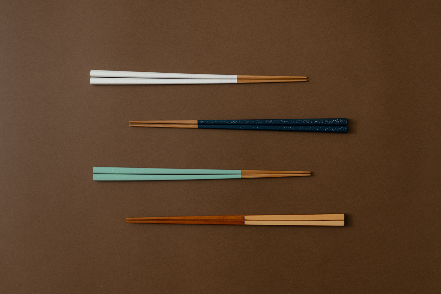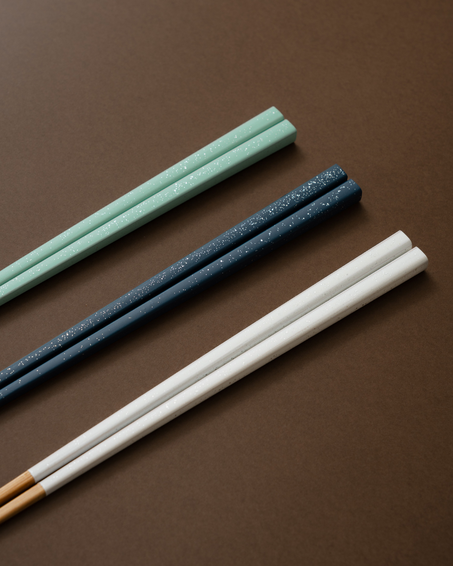 대나무 하나만을 연구하며 반 세기 넘게 역사를 이어온 〈야마치쿠〉의 〈스타라이트 젓가락〉입니다. 밤하늘에서 영감을 받아 펄로 반짝이는 별과 은하수를 표현한 시리즈로, 군청·소세이·백야 세 가지 색상으로 선보입니다.