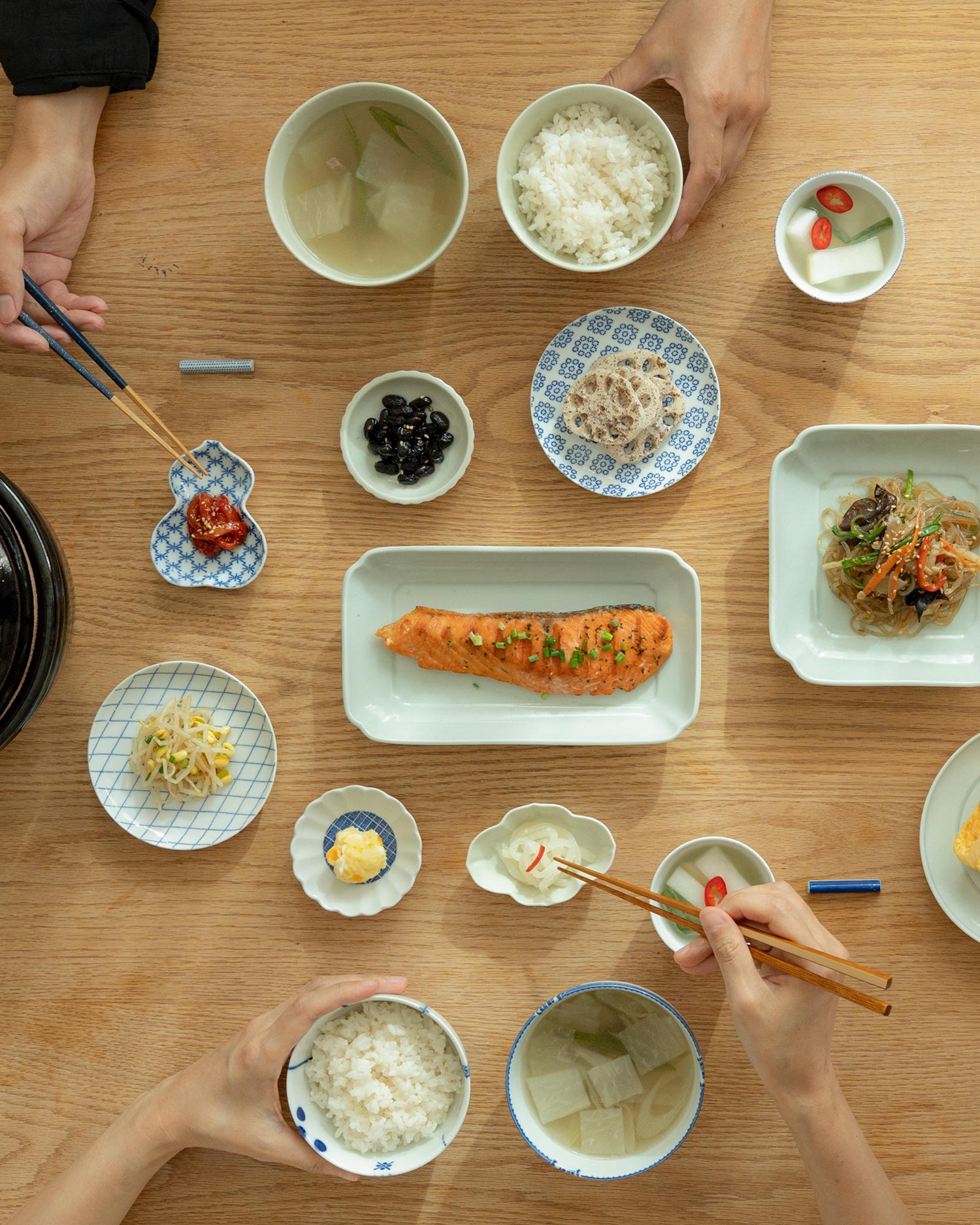 기본적인 사이즈와 형태는 INBAN 밥-국공기와 동일합니다. 부담 없는 밥공기 사이즈인 S와, 국공기 넉넉한 밥공기로 적합한 L 사이즈가 준비되어 있어요. 노란빛이 감도는 색감 덕분에, 현미나 잡곡밥과 더할 나위 없이 어울립니다. 흰쌀밥과의 미묘한 톤 대비도 좋은 느낌이에요.